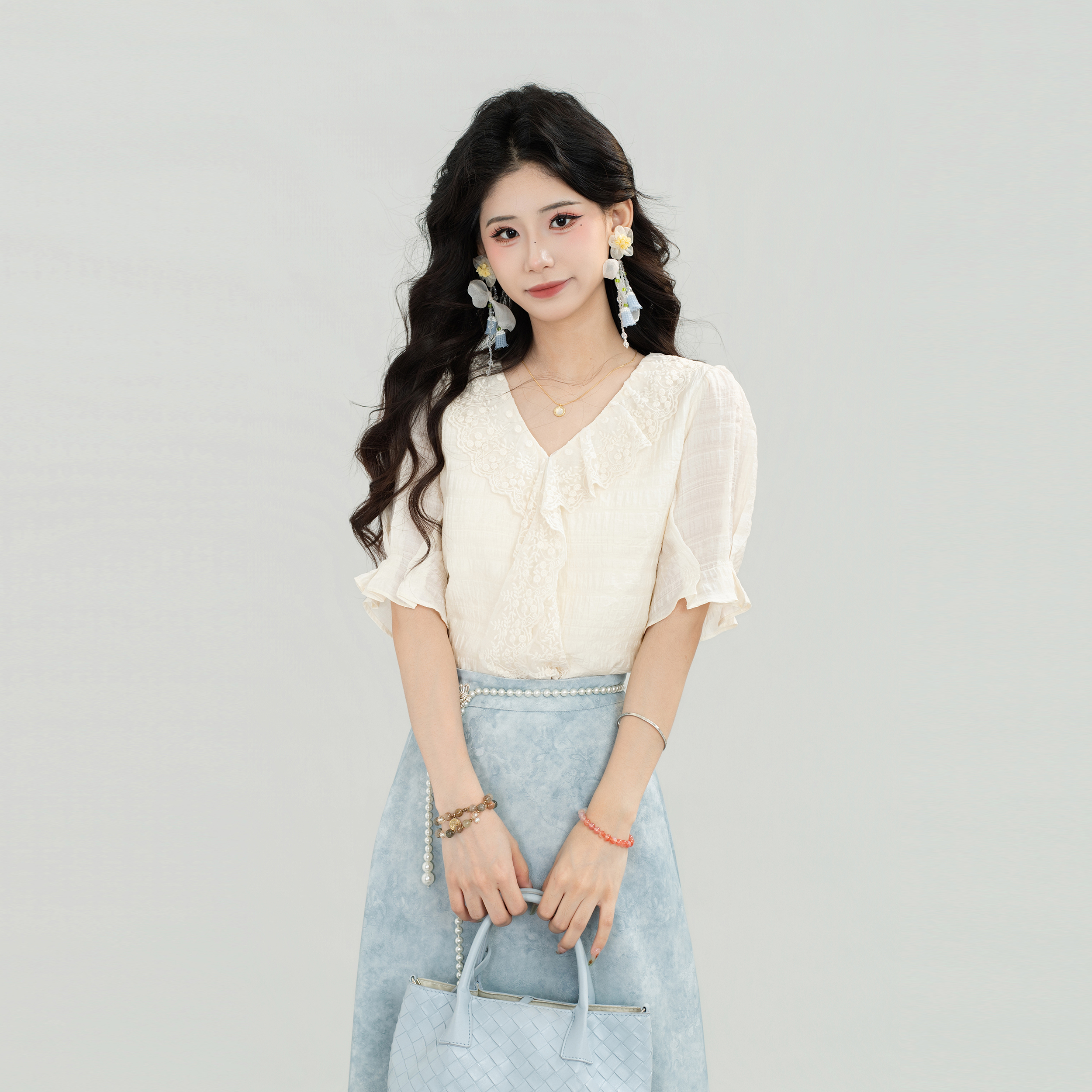 DaYuanSAD张嘉圆港风日记【锦朵】百搭显瘦设计短袖衬衫女#J4898