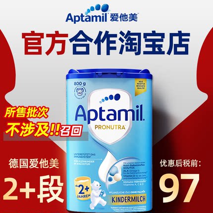 德国爱他美经典版2+加段蓝罐2岁以上婴幼儿宝宝牛奶粉800g有123段