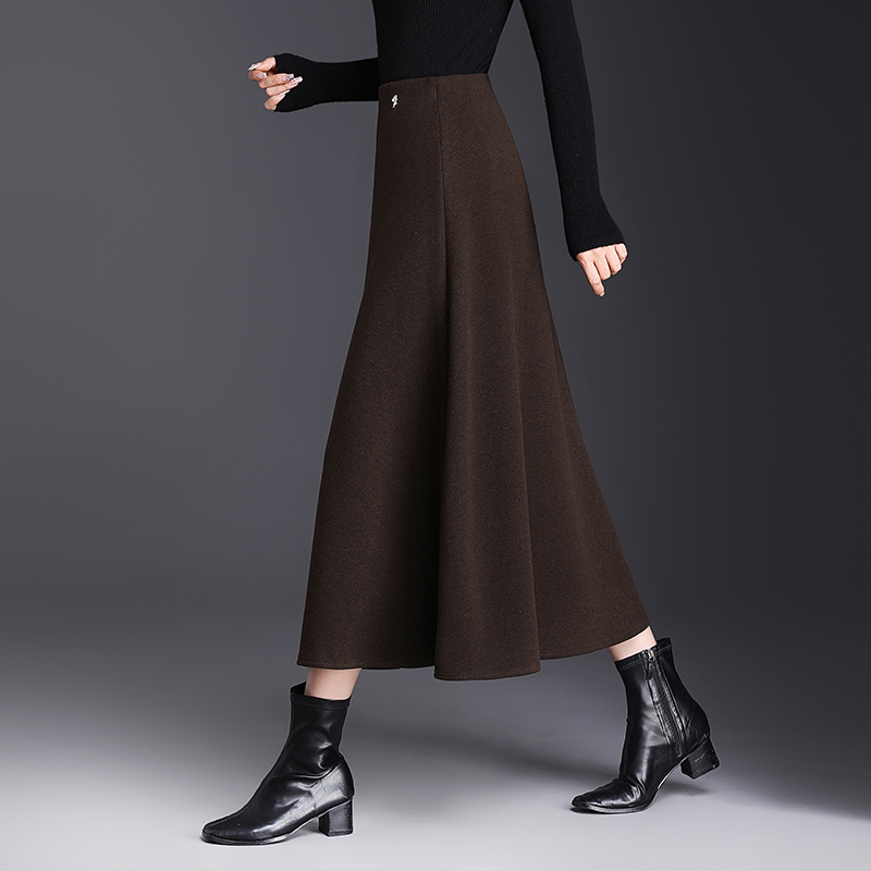 高腰羊毛呢a字半身裙女秋冬2025年新款保暖遮胯呢子长裙大摆伞裙