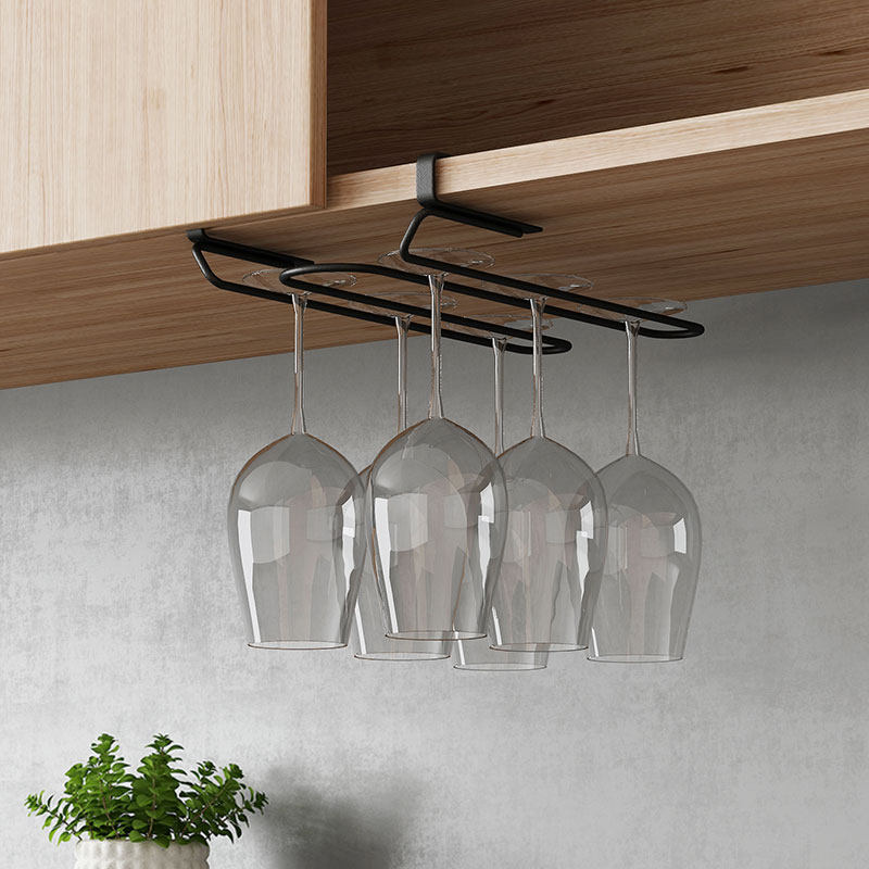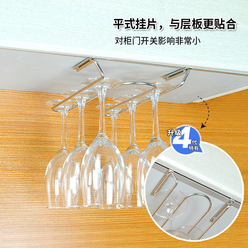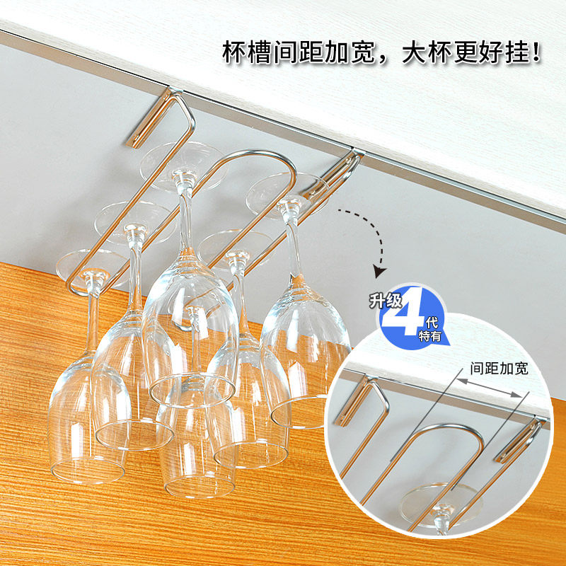 免打孔倒挂红酒杯架 家用创意304不锈钢现代简约酒柜悬挂高脚杯架