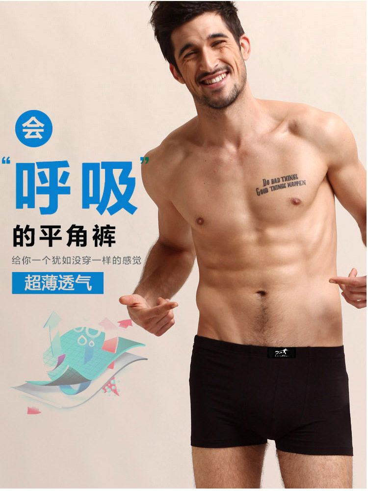 男士内裤男莫代尔平角纯黑色印花深色宽松舒适透气四角裤青年性感