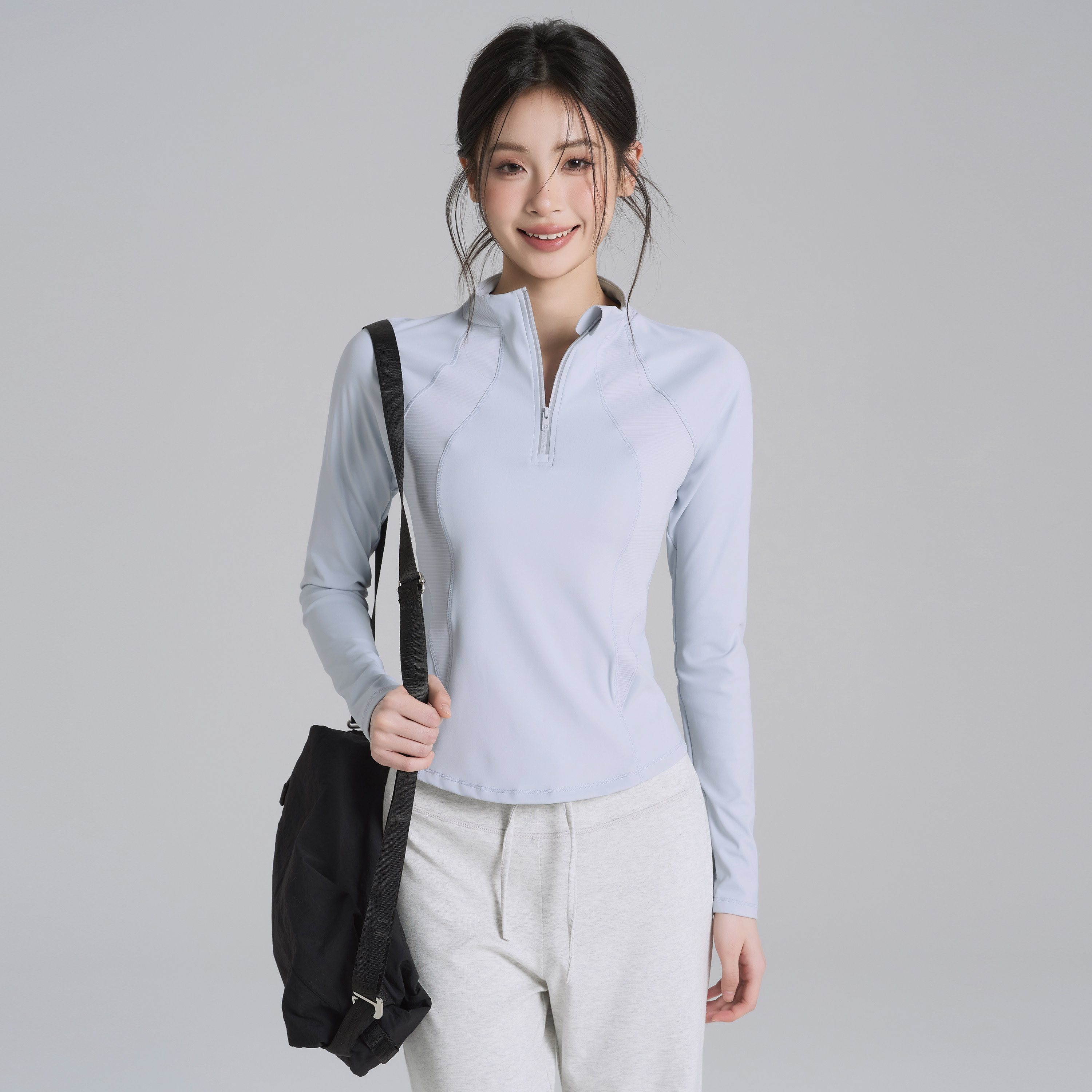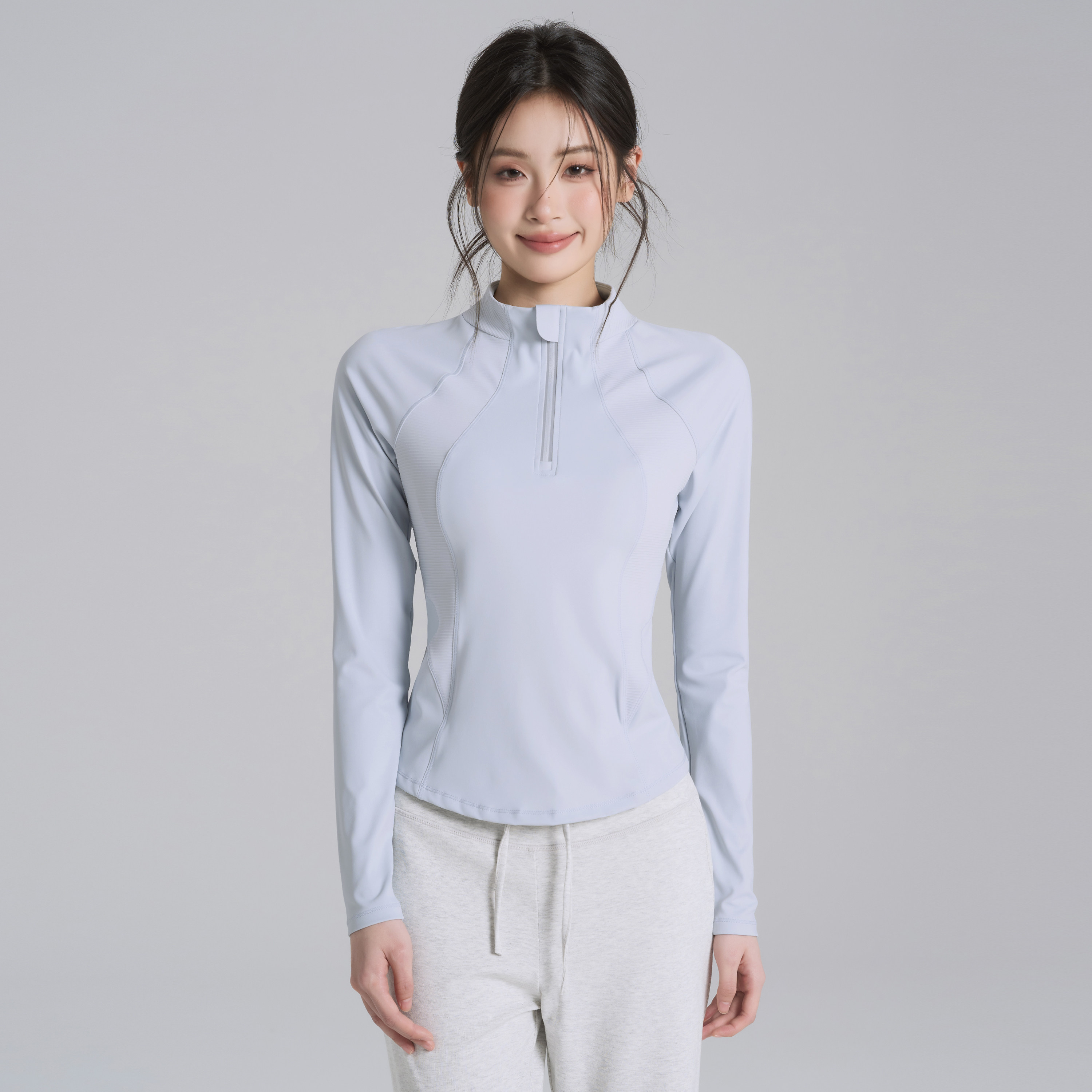 女秋冬运动训练半拉链拼接上衣