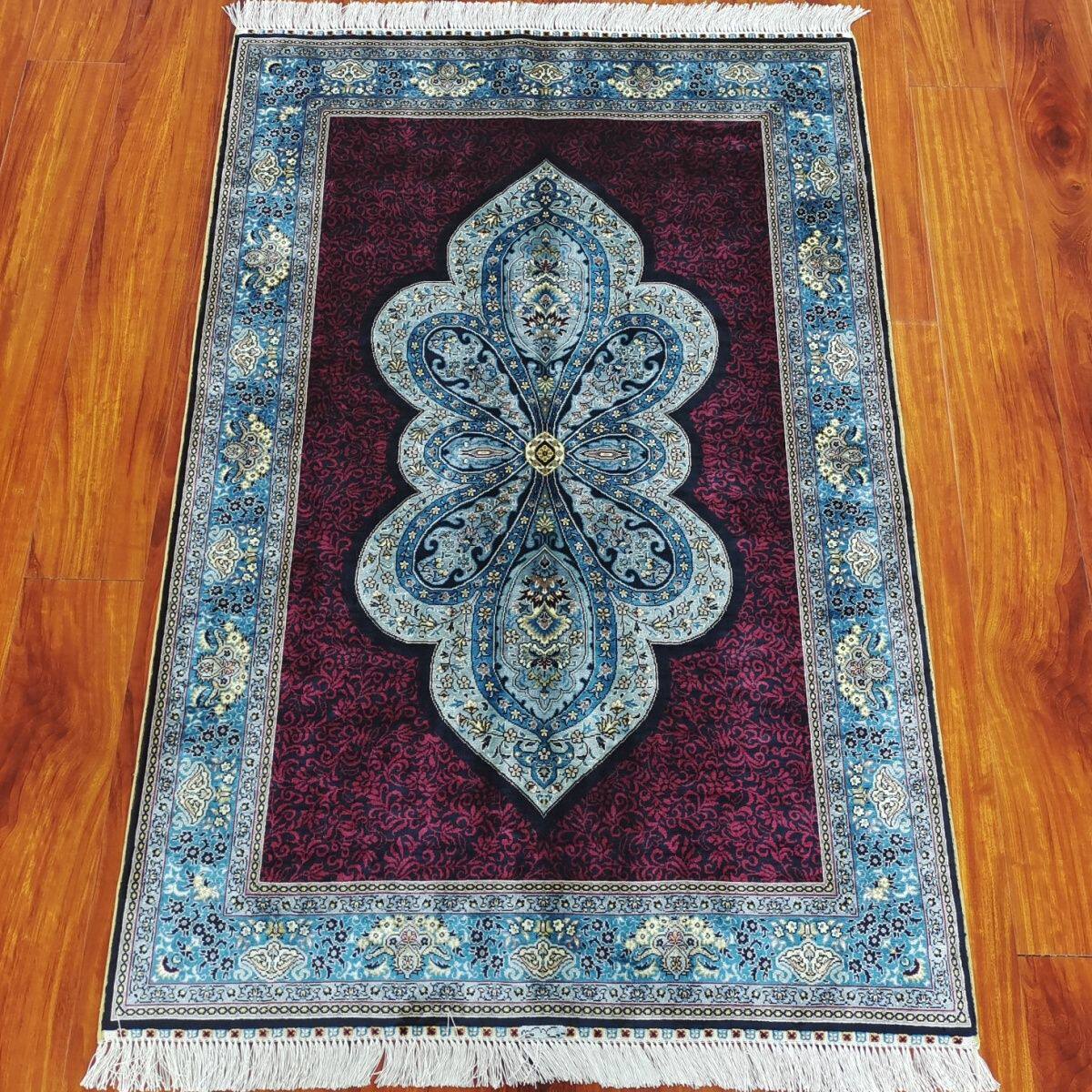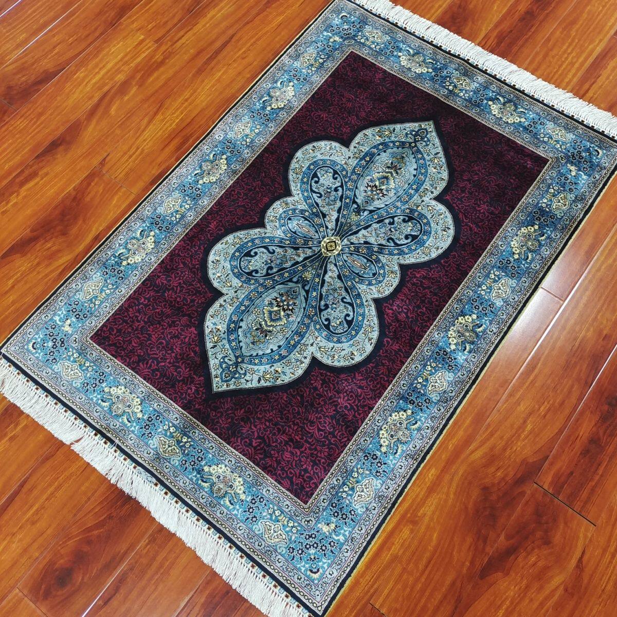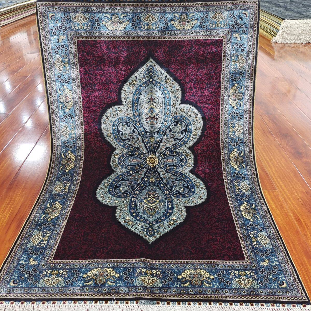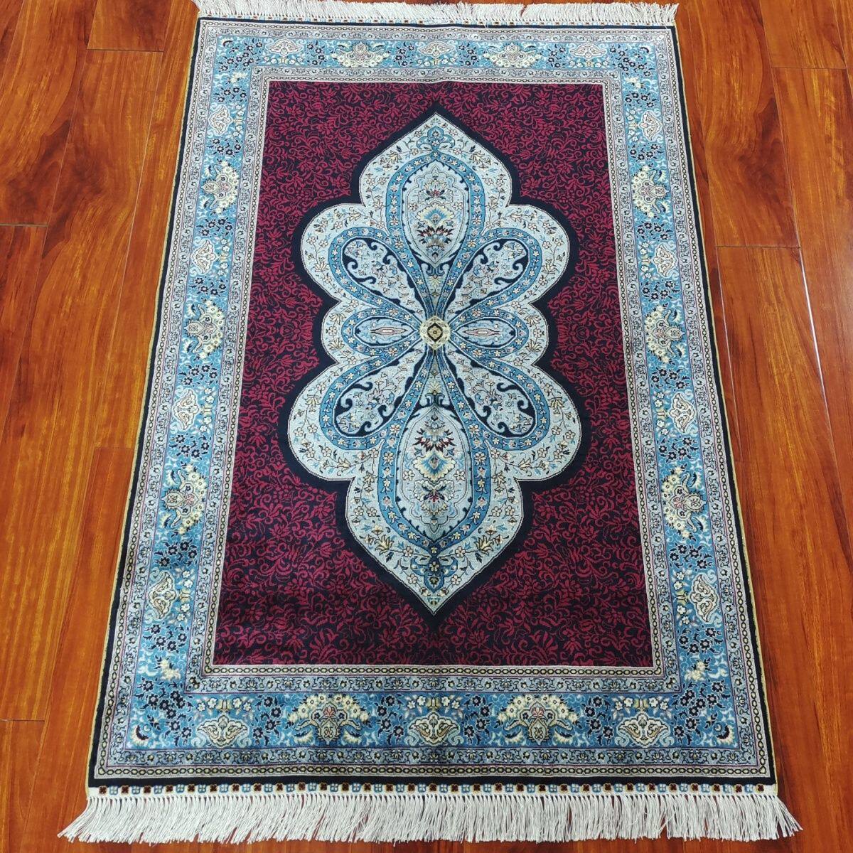 土耳其纯手工打结小块真丝红底地毯玄关书房卧室家用包邮