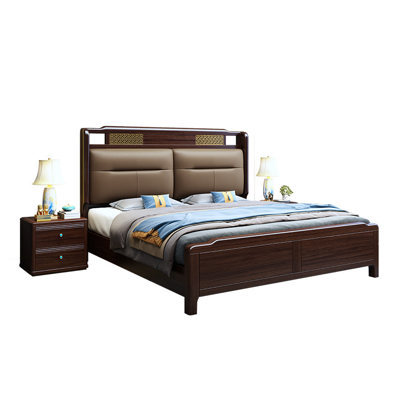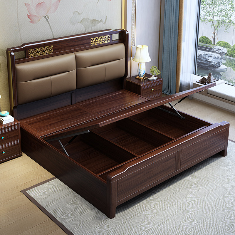 乌金木床新中式卧室一米八双人气压高箱储物1.5m实木床真皮软包床