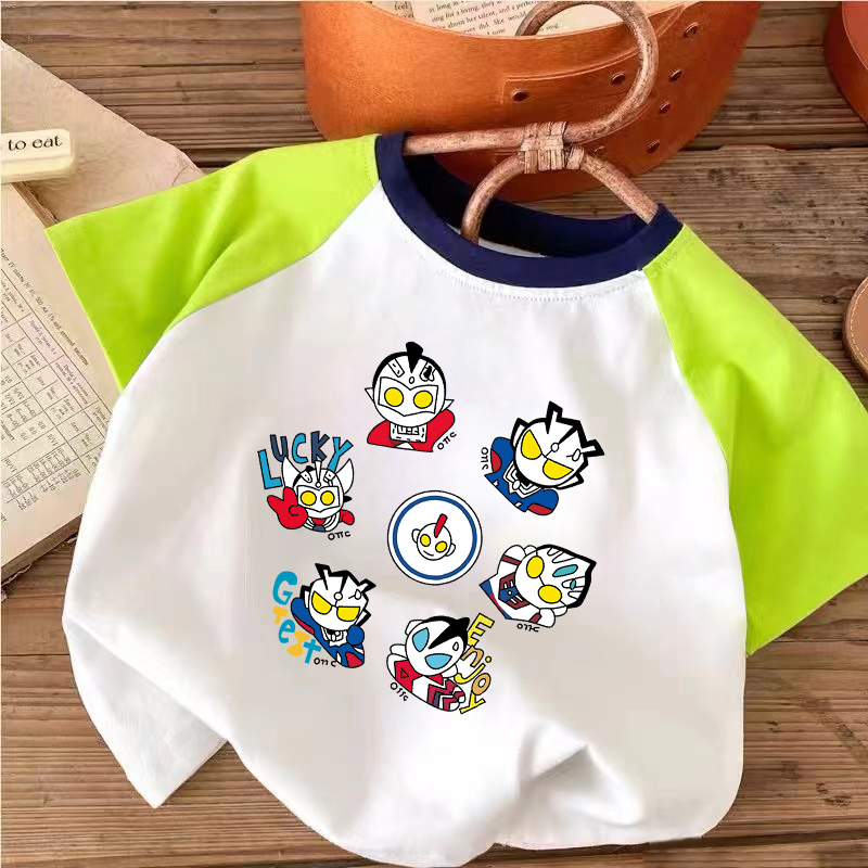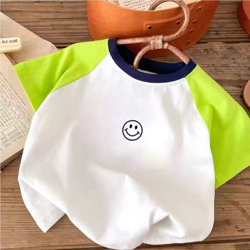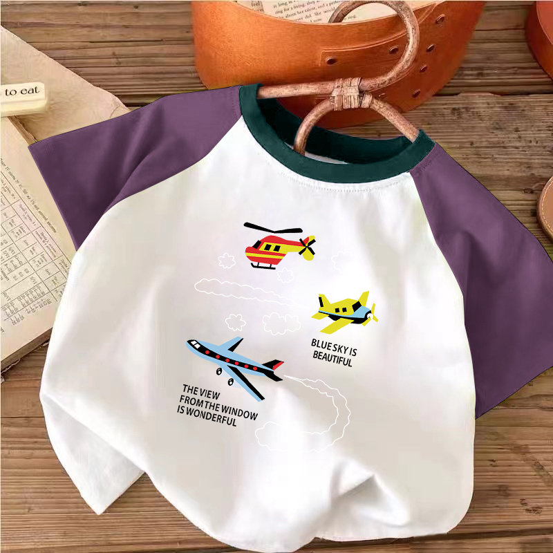 100%纯棉男童插肩撞色短袖T恤夏季小孩儿童宝宝卡通帅气半袖上衣