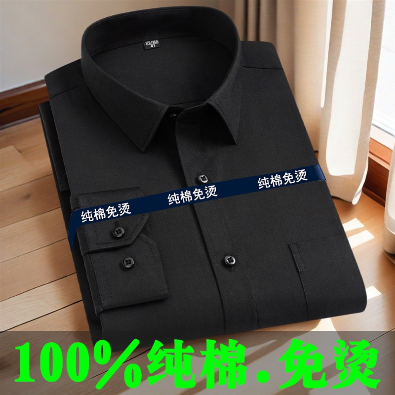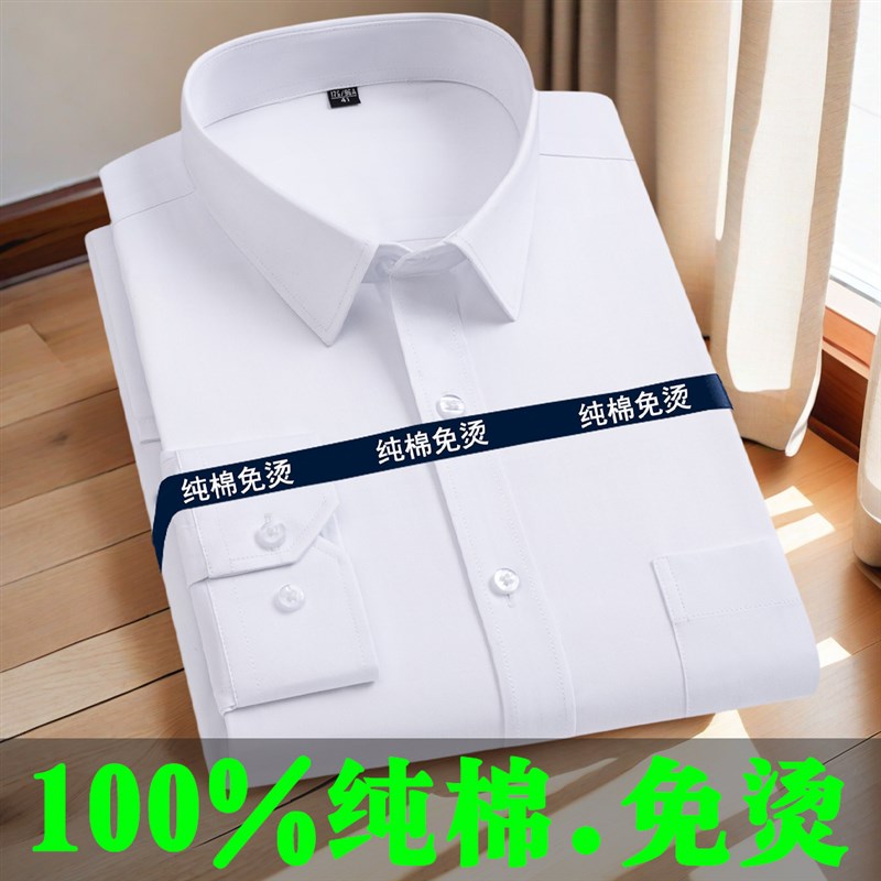 男士商务工装白色长袖衬衫全棉免烫职业休闲加肥宽松大码衬衣