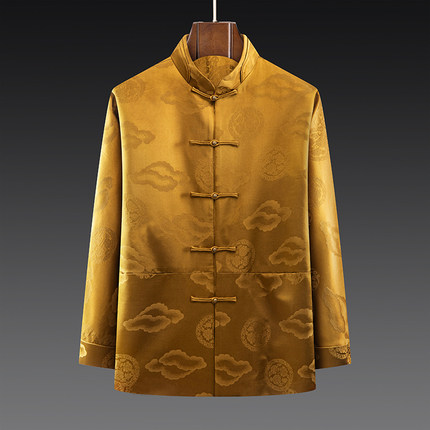 高端重磅桑蚕丝中式国风春秋外套 中老年唐装爸爸男中式真丝上衣