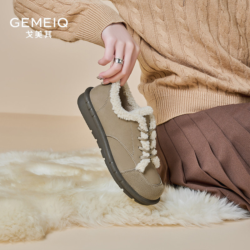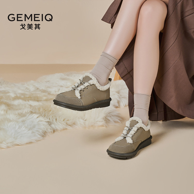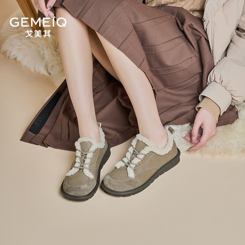 戈美其加绒棉鞋女2024春季新款复古平底靴子时尚英伦风加绒小皮鞋