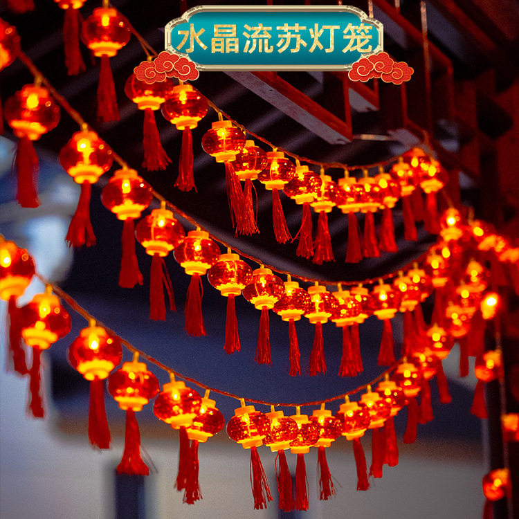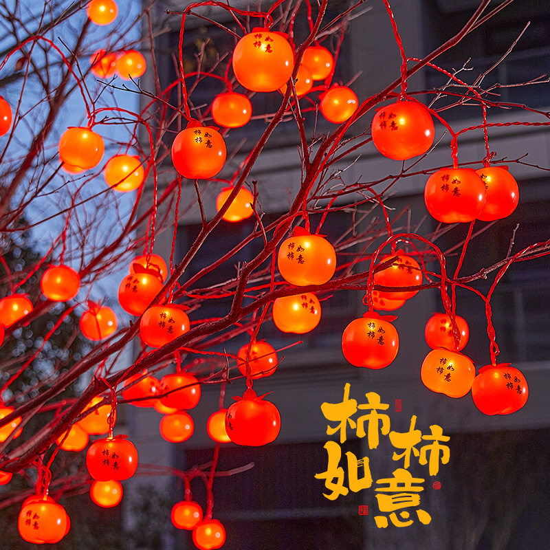 新年红灯笼灯串福字春节防水装饰灯太阳能柿子灯串氛围灯水晶灯笼