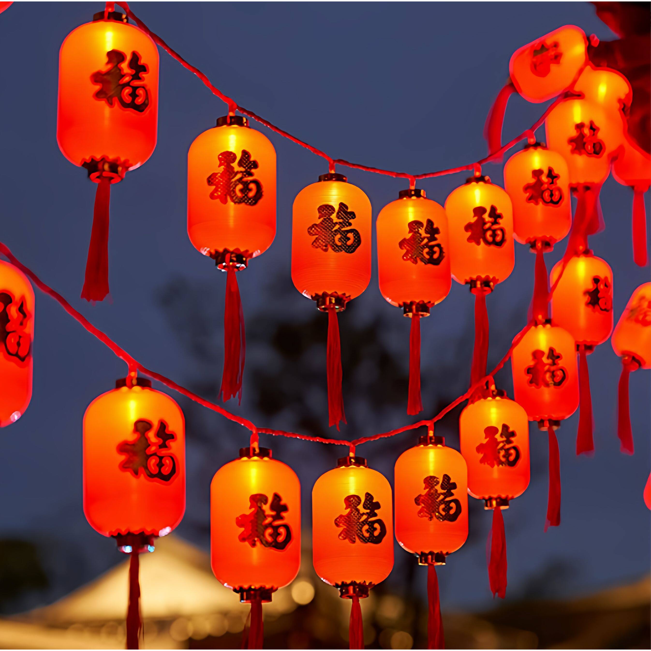 新年福字太阳能小红灯笼串灯