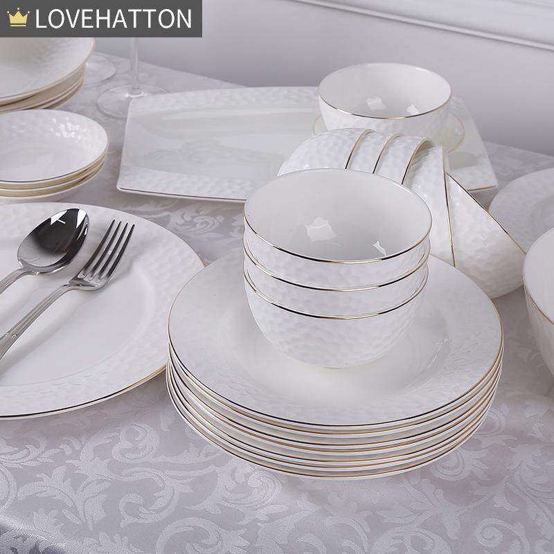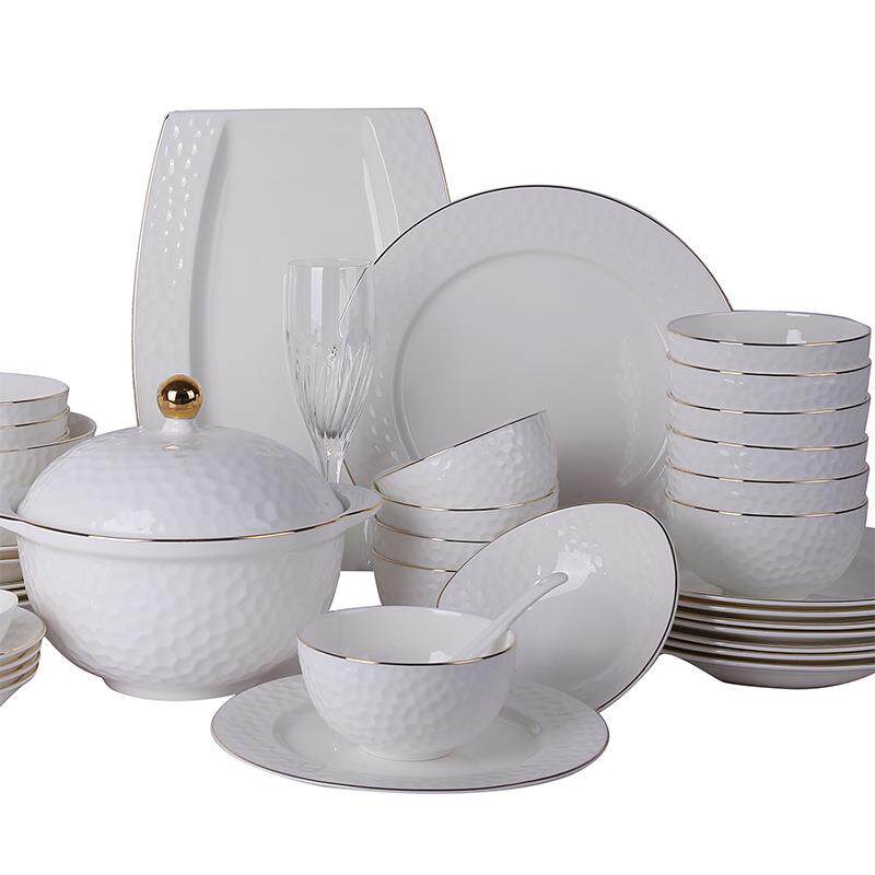 欧式金边浮雕欧式骨质瓷器陶瓷餐具家用送礼餐具套装组合56头