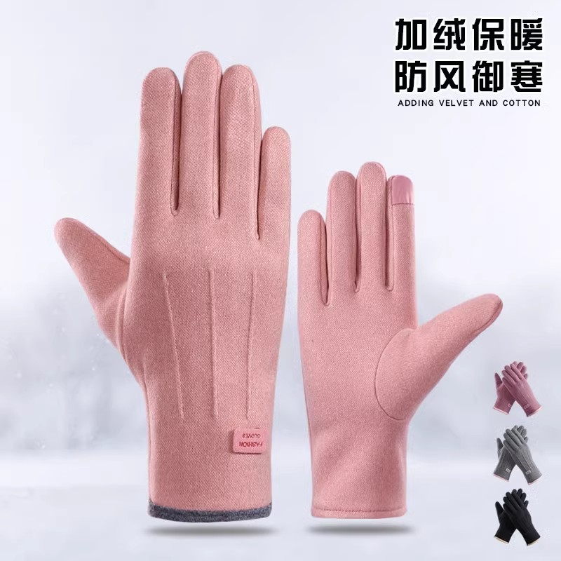 冬季保暖手套女加绒保暖防风防寒触屏骑行开车户外运动德绒耐磨男