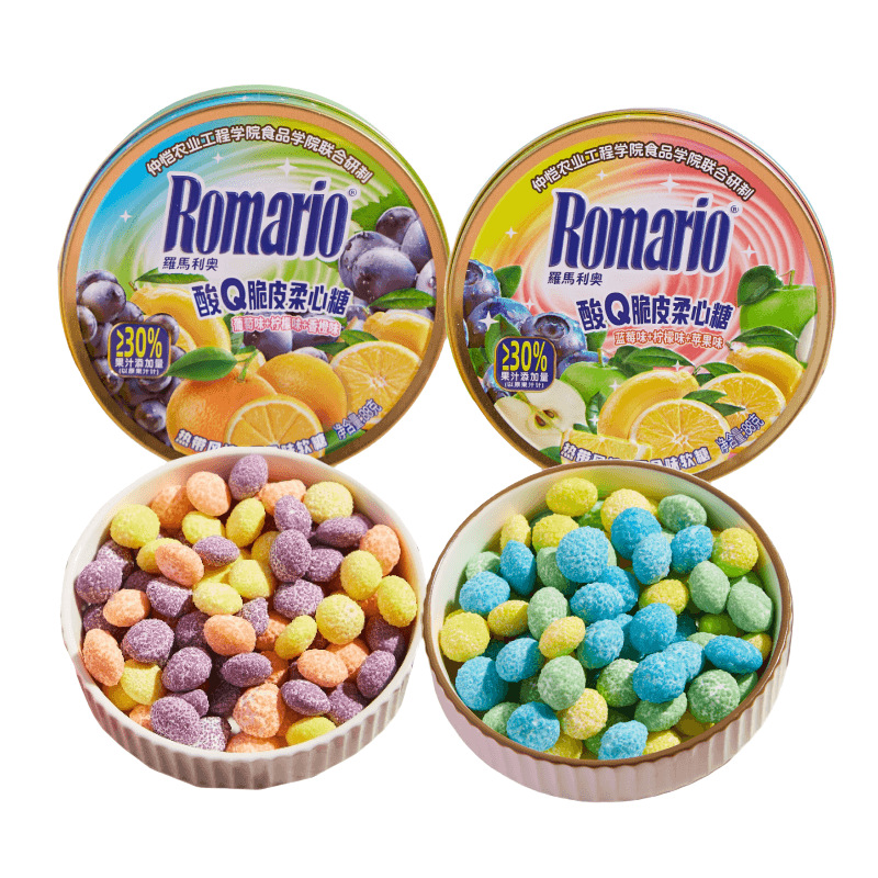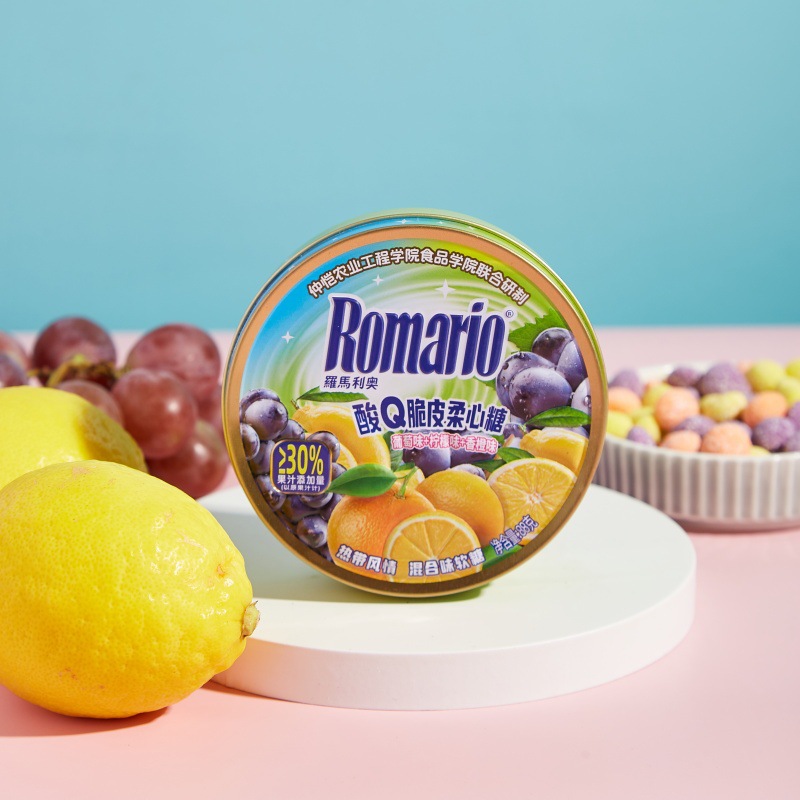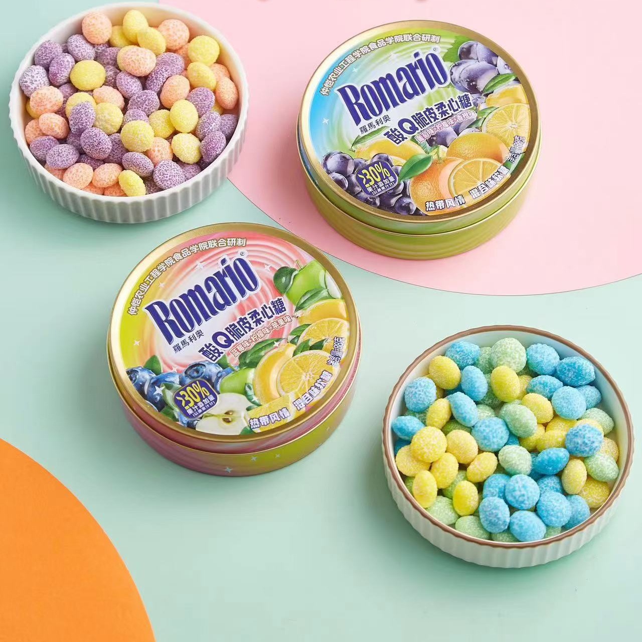 罗马利奥酸Q脆皮柔心糖混合味软糖清新口气果汁糖铁盒装约会糖果