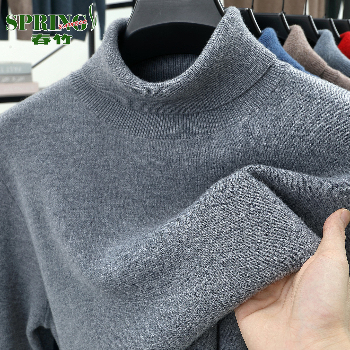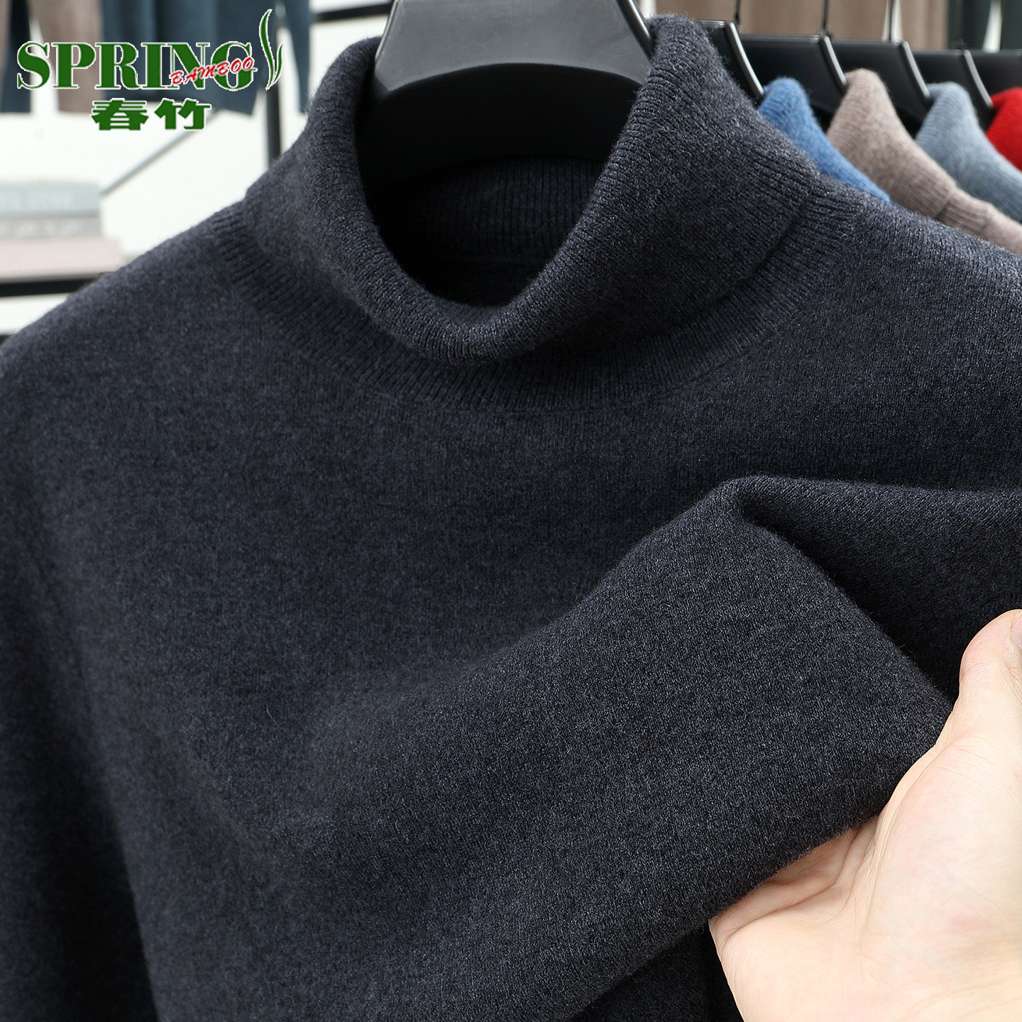 春竹羊绒衫男士高翻领加厚毛衣中老年纯色保暖冬季新款百搭打底衫