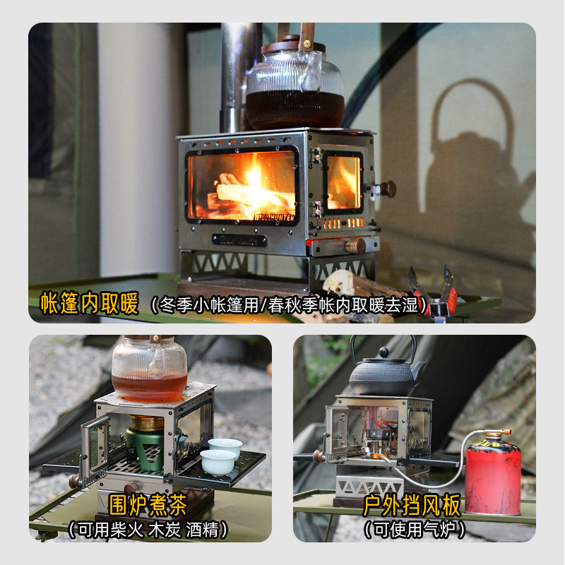 荒野猎人户外精灵迷你柴火炉露营帐篷取暖桌面小壁炉便携野餐炉具