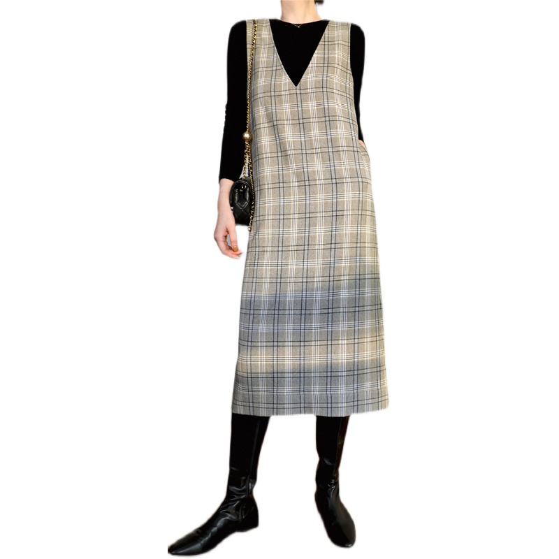 PKH.HK气质女装折扣店 推荐与外套友好CP厚温暖深V背心格纹连衣裙