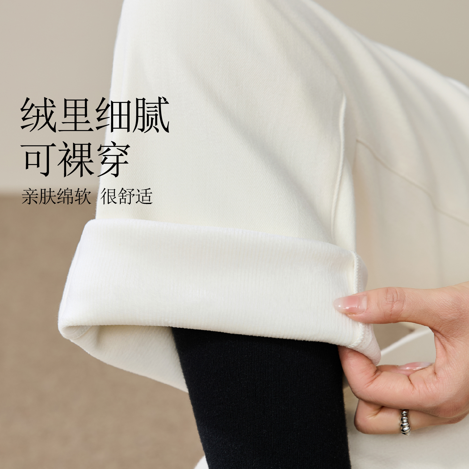 逸阳米白色牛仔裤加绒直筒裤女2025冬季新款休闲高腰窄版阔腿长裤