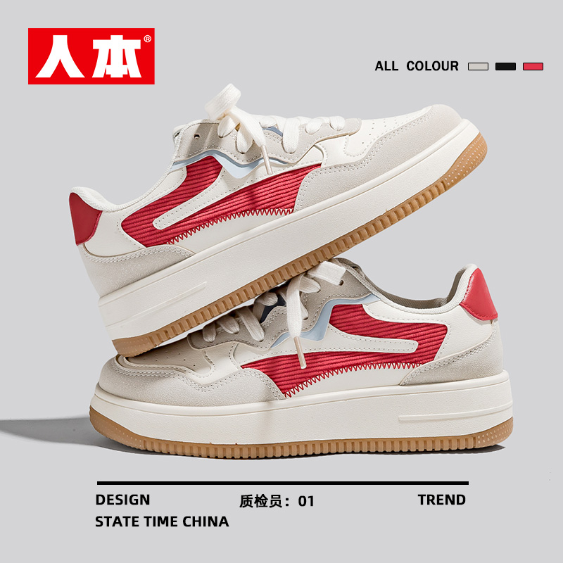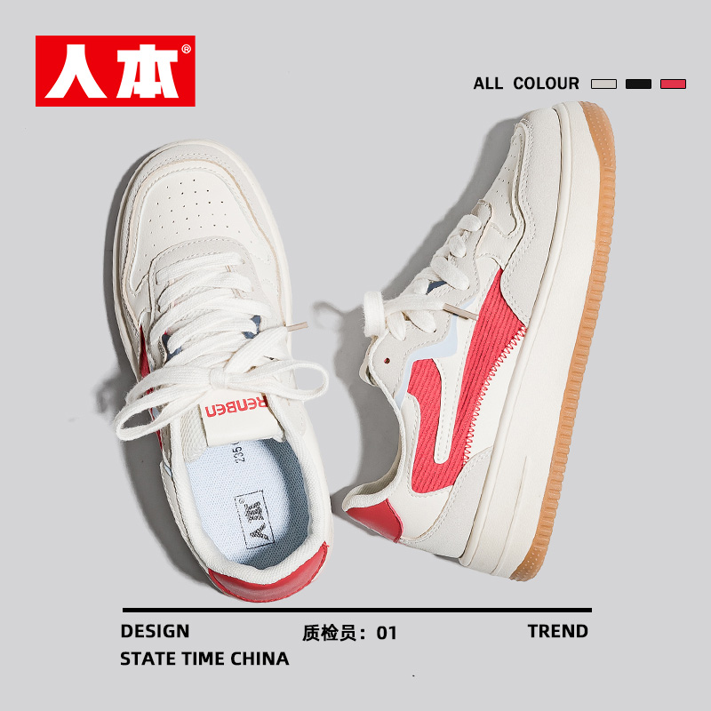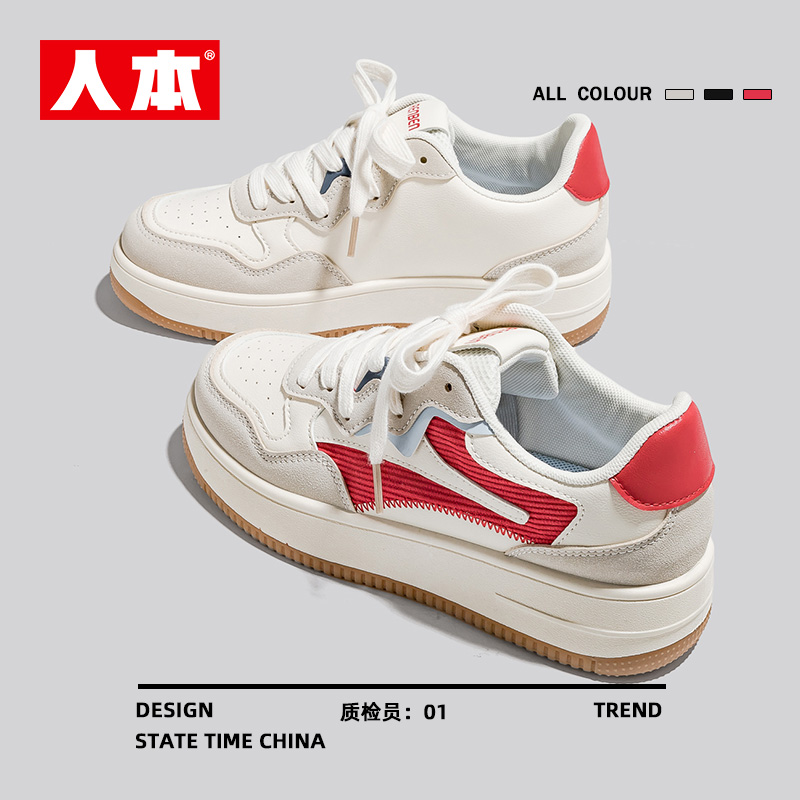 人本板鞋女鞋2025新款厚底百搭秋季休闲鞋女款ins潮运动小白鞋子