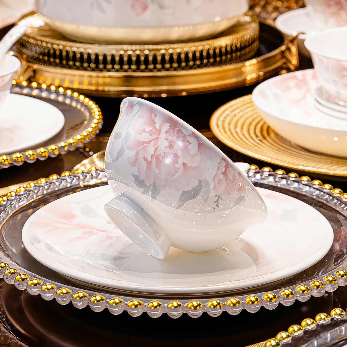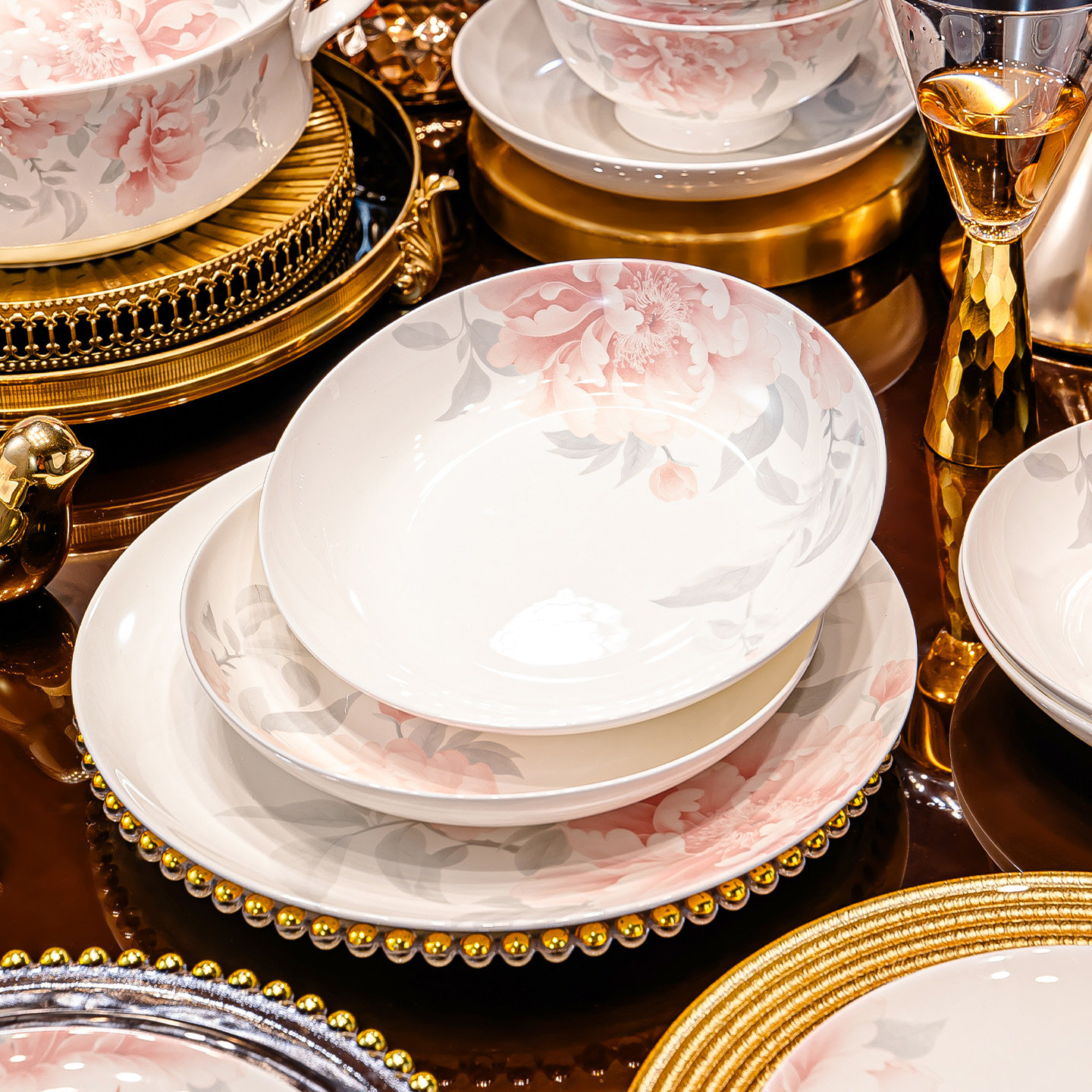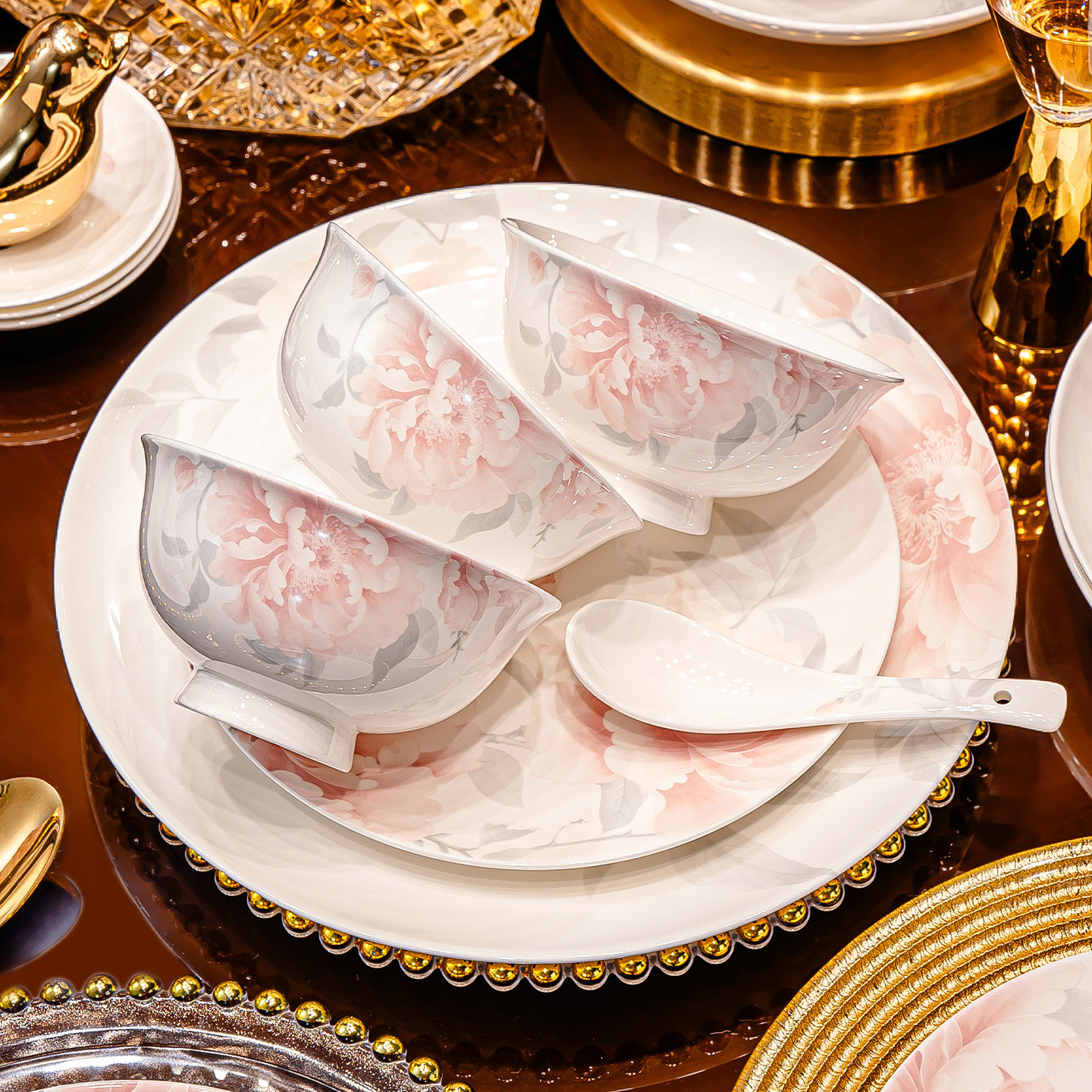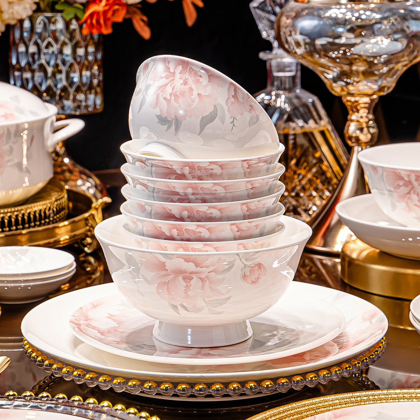 景德镇陶瓷餐具套装家用碗碟盘组合釉下彩骨瓷碗盘子乔迁送礼