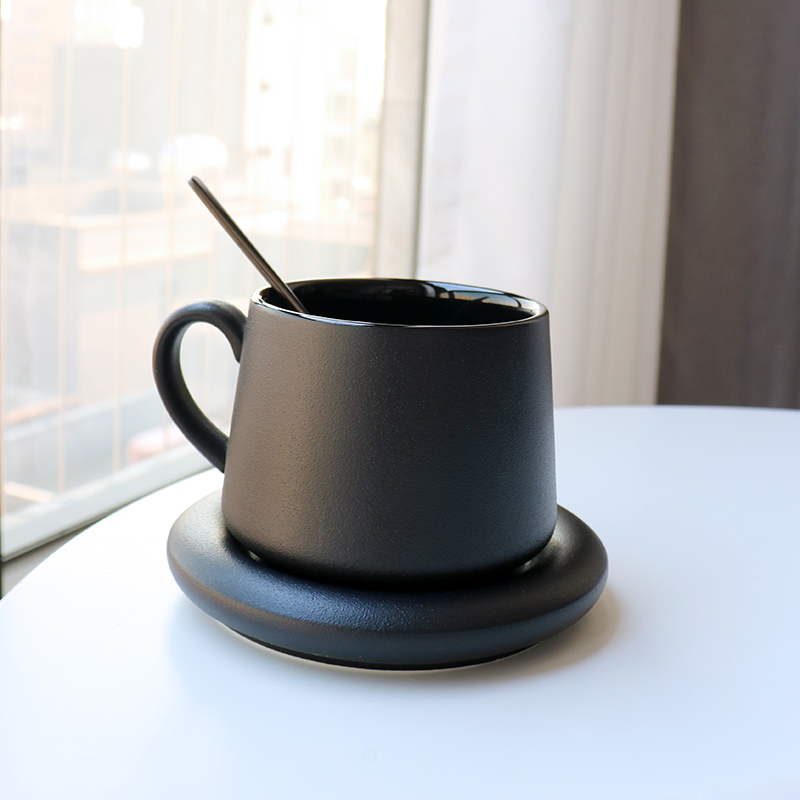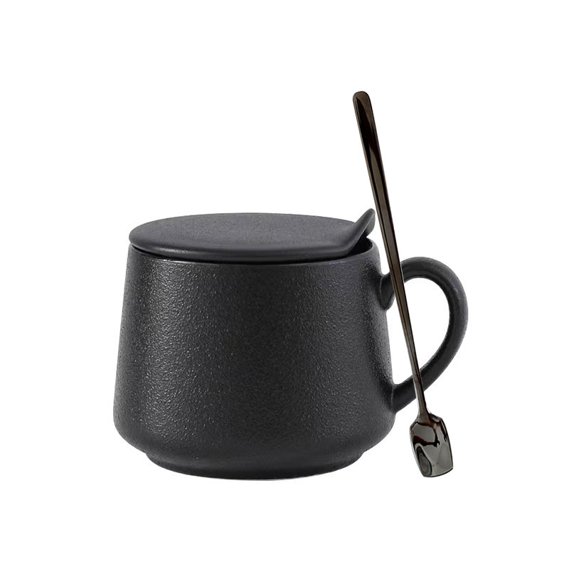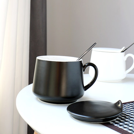 北欧陶瓷马克杯带盖勺哑光高级感磨砂咖啡杯情侣水杯家用早餐杯子