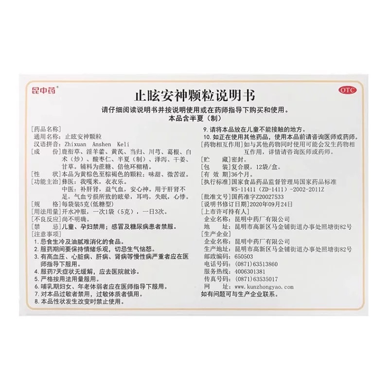 【昆中药】止眩安神颗粒5g*12袋/盒