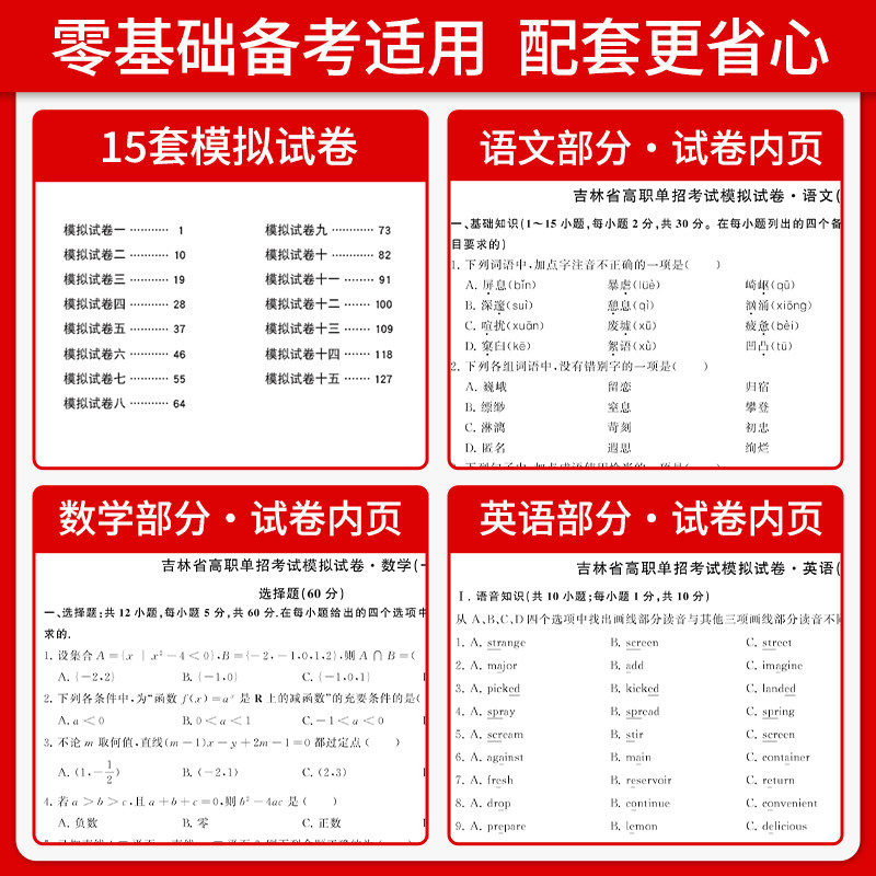 全新2026年吉林省高职单招考试模拟试卷语文数学英语单招考试真题复习资料2025吉林单招教材