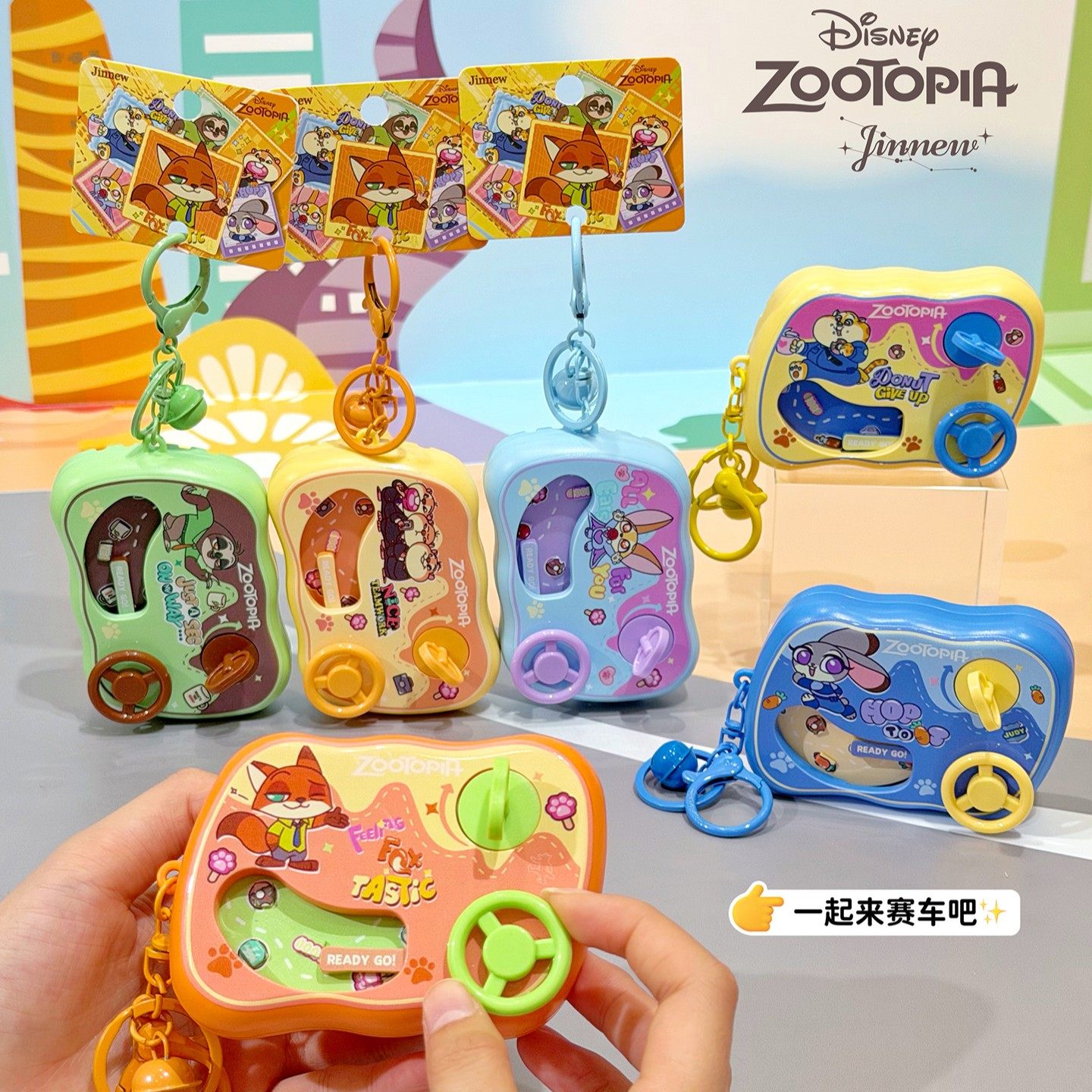 正版迪士尼疯狂动物城解压赛车游戏机钥匙扣趣味随身小玩具挂饰