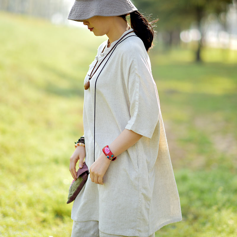 夏新品女装中式衬衫复古盘扣斜襟宽松大码上衣禅意茶服瑜伽太极服