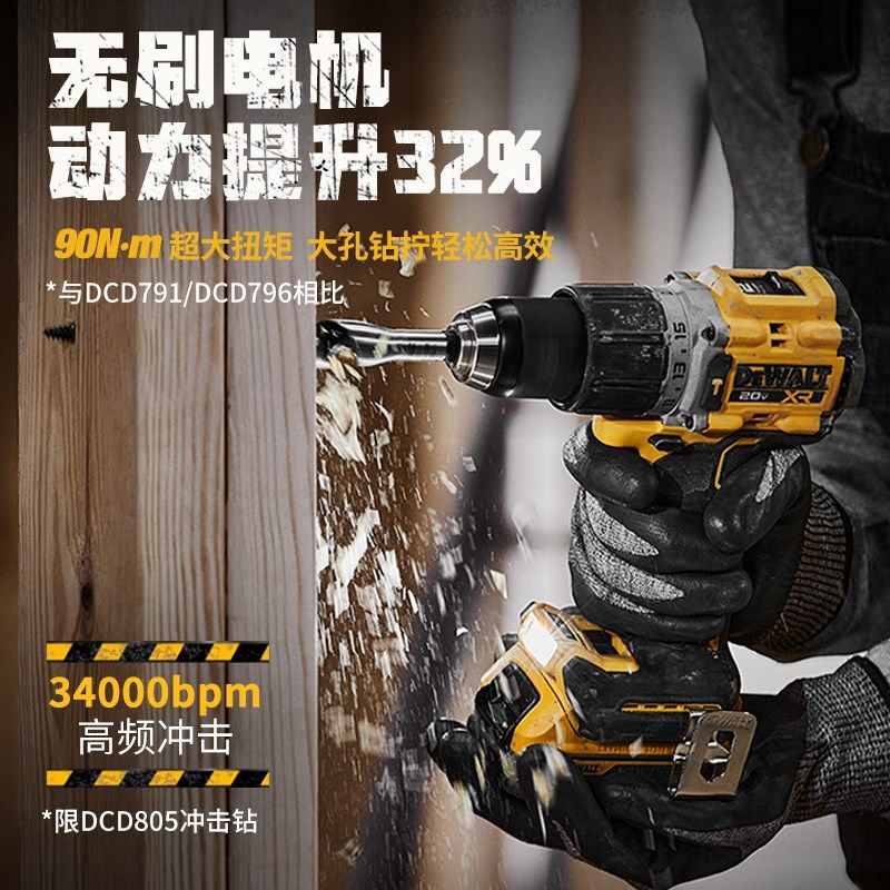 得伟20V无刷手电钻DCD800/805冲击钻锂电充电式多功能手枪起子机
