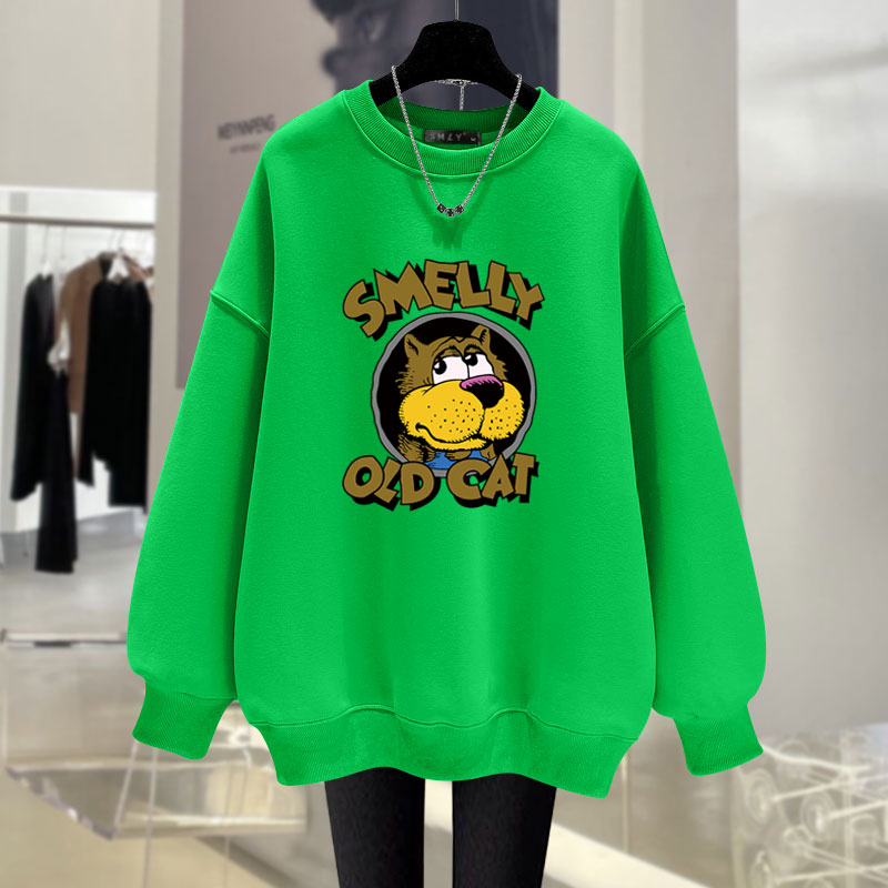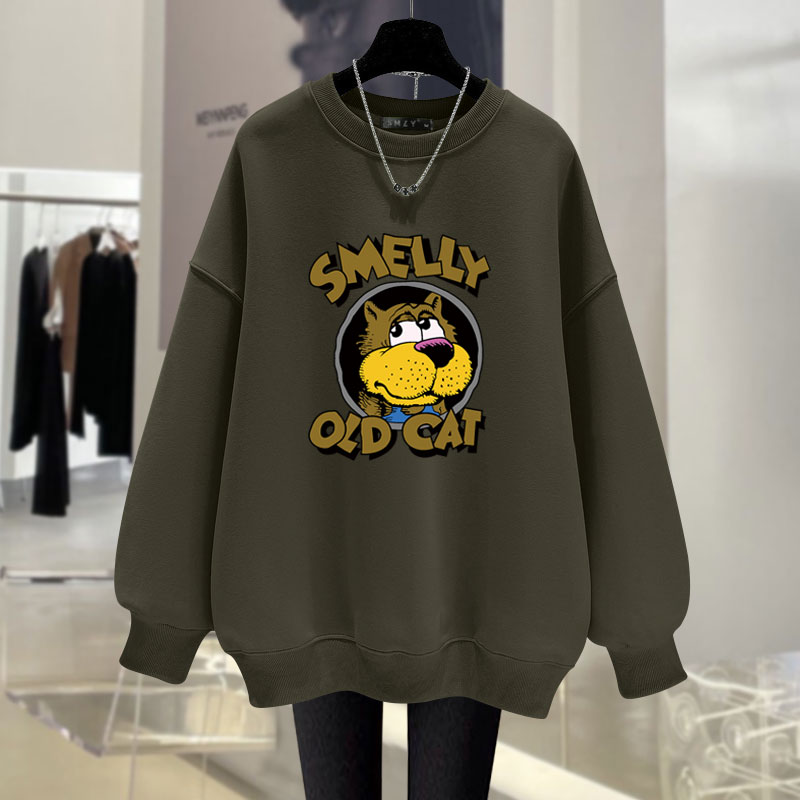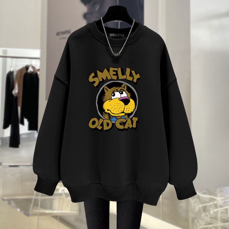 卡通字母圆领卫衣女2025春秋冬宽松慵懒风加绒加厚中长款遮屁股潮