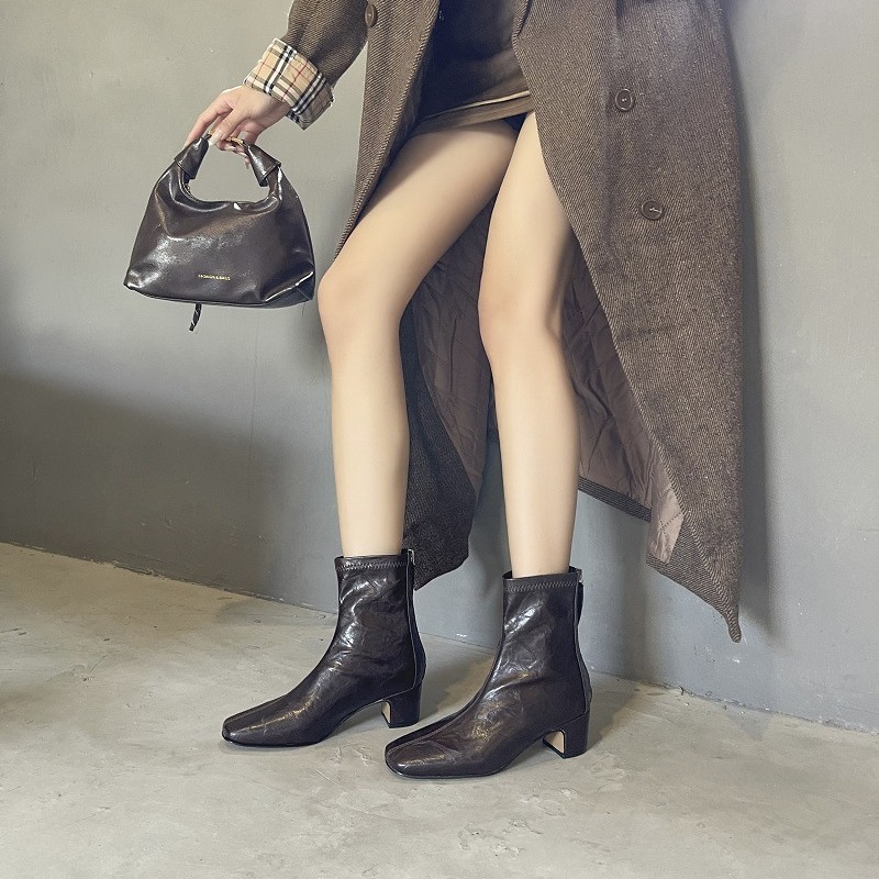 法式复古瘦瘦靴中跟粗跟短靴女25