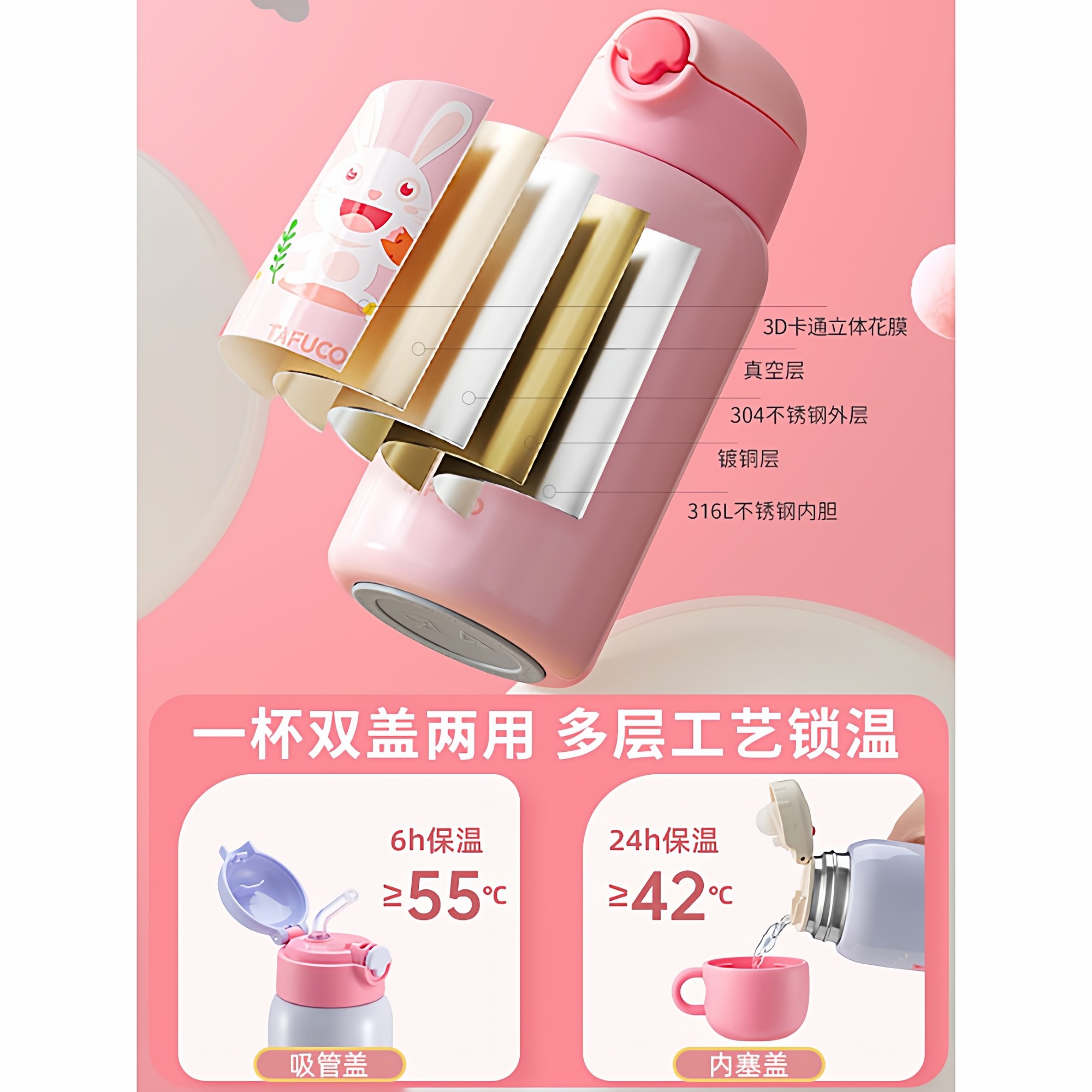 日本泰福高儿童保温杯宝宝直饮吸管杯女孩小学生幼儿园水壶水杯子