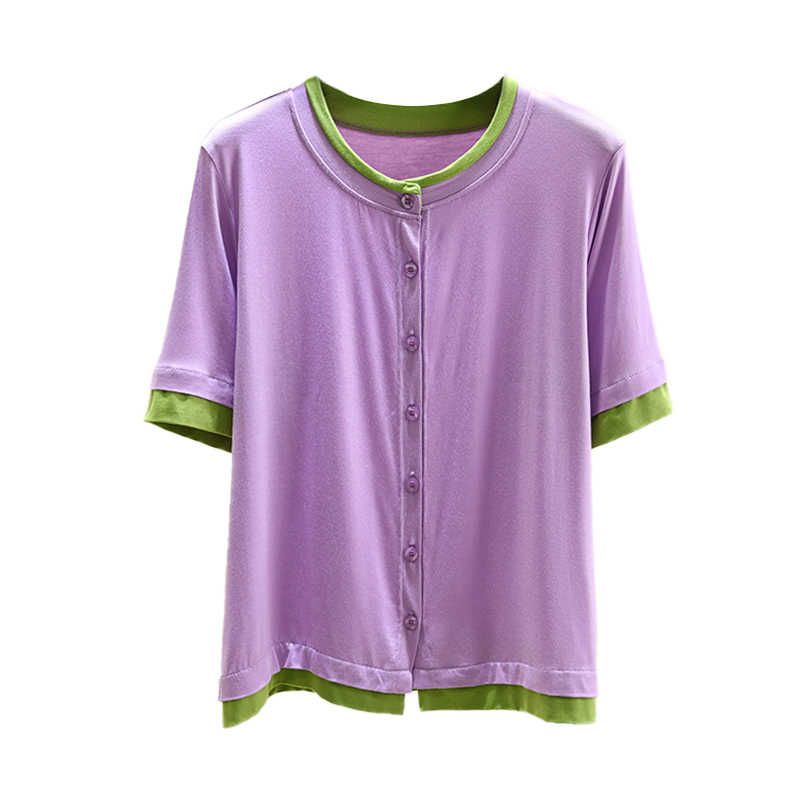 莫代尔圆领系扣上衣薄款短袖开衫