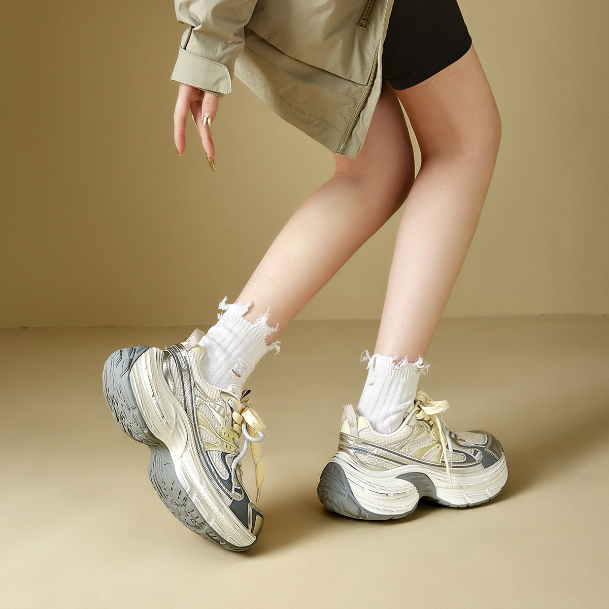 意尔康厚底轻便老爹鞋女2026春秋款炸街小个子透气休闲运动鞋单鞋
