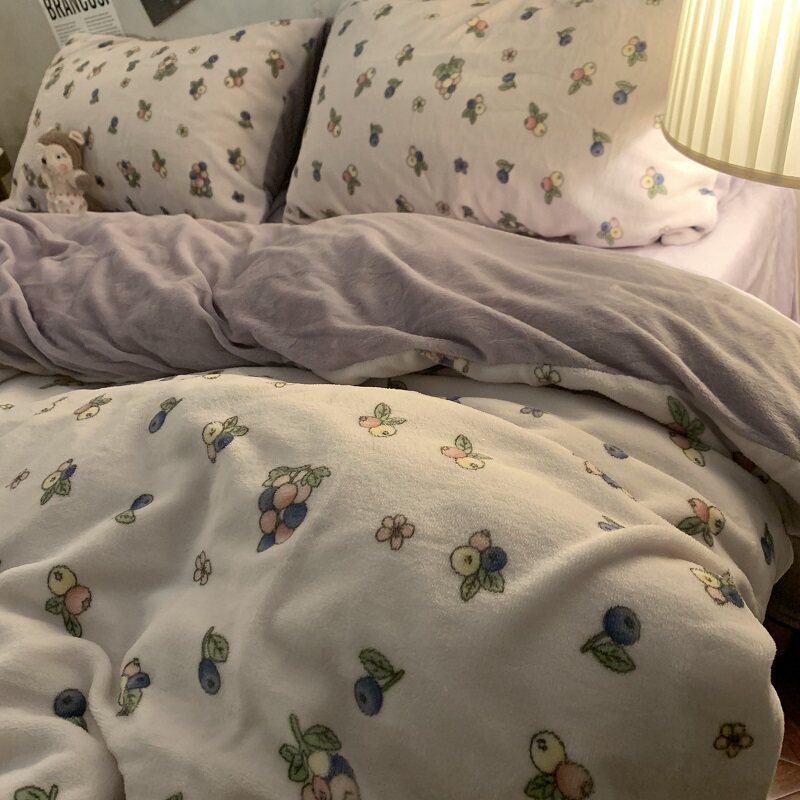 新款冬天牛奶绒四件套紫色珊瑚绒水晶绒床品厚被套加绒床单三件套
