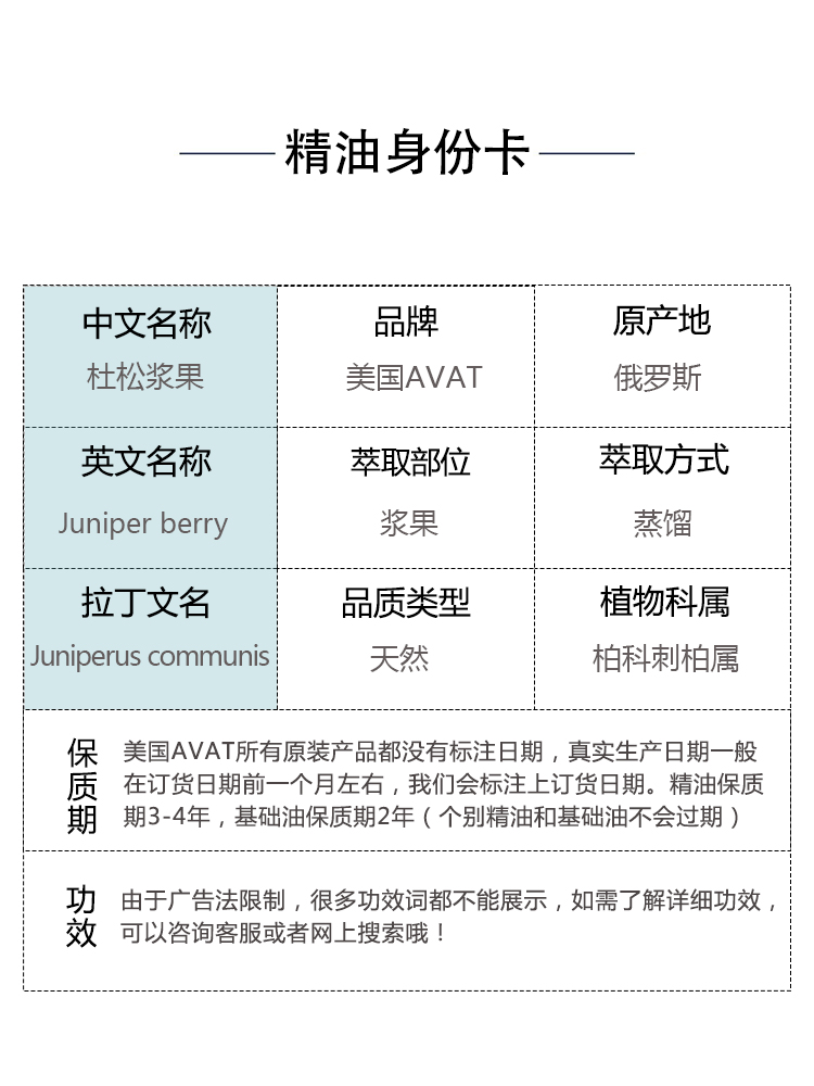美国AVAT杜松浆果单方精油欧刺柏 紧致消水肿身体按摩芳疗