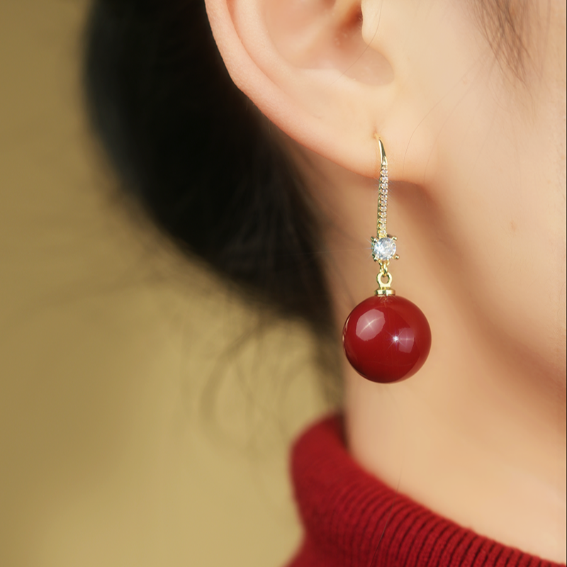 2025经典新年红色国风经典红色珍珠耳环时尚女士流苏长款耳钩162