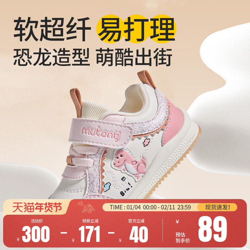 牧童学步鞋男宝宝2025秋冬新款童鞋恐龙婴儿鞋软底加绒面包鞋女童