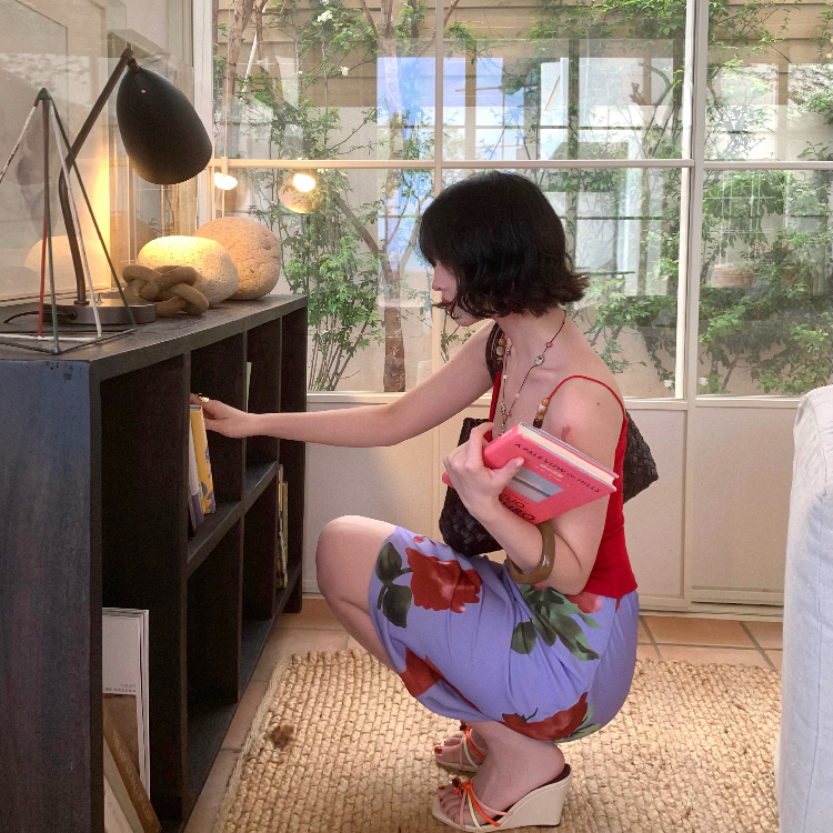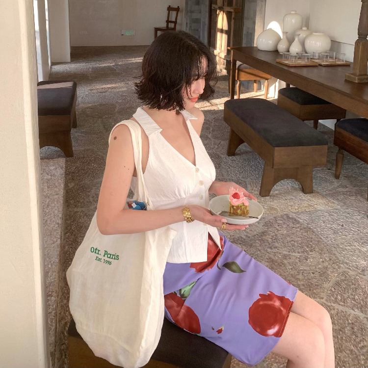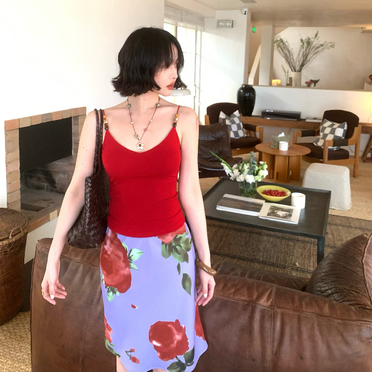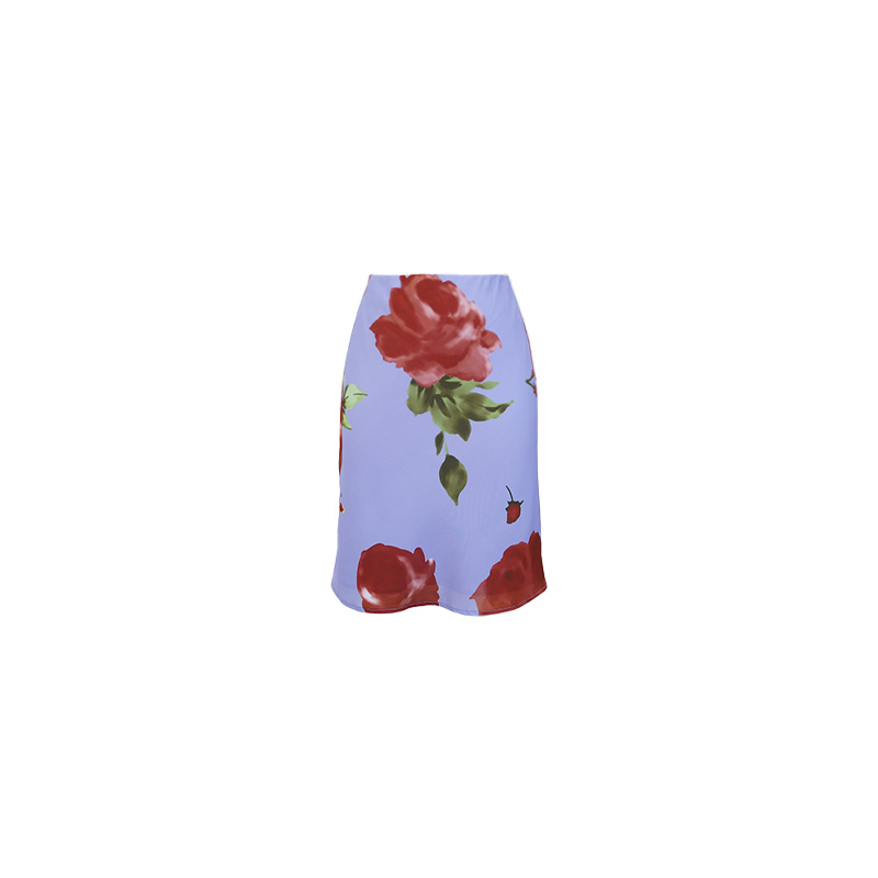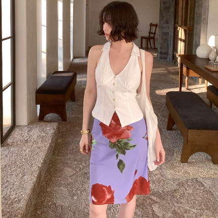 酒午自制【红紫曳】港风复古夏季高腰显瘦垂坠感印花包臀半身裙女