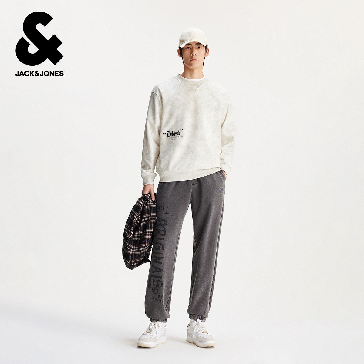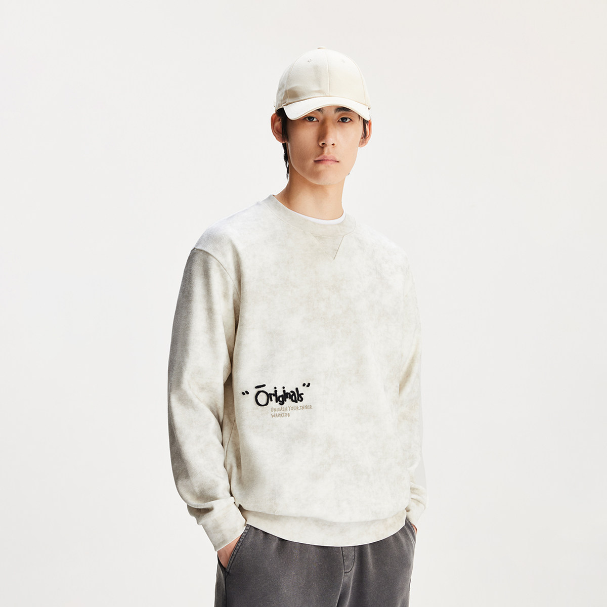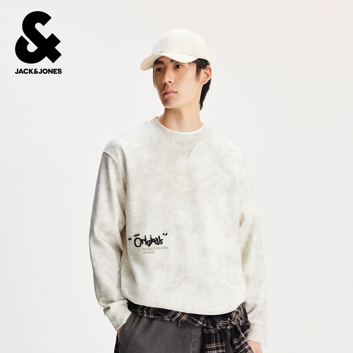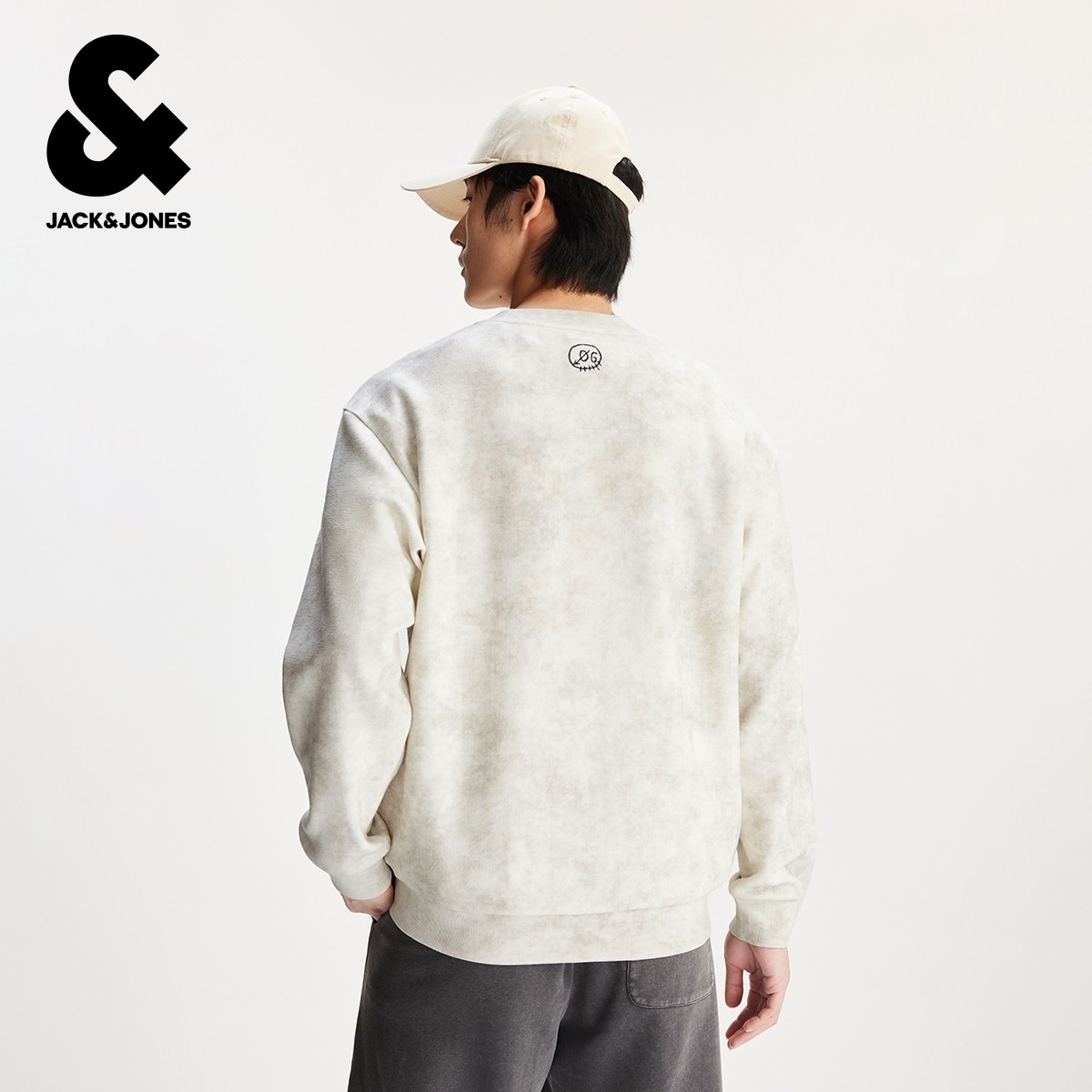 杰克琼斯男装卫衣春秋立体字母牙刷绣扎染肌理感廓形圆领卫衣加绒
