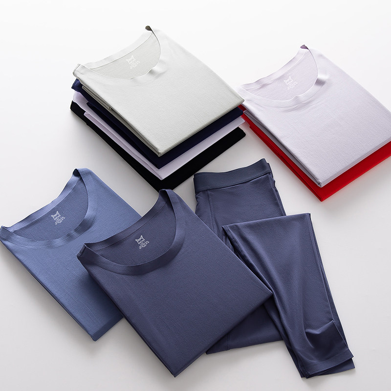 猫人无痕秋衣秋裤套装男莫代尔圆领男士超薄款修身V领保暖内衣冬