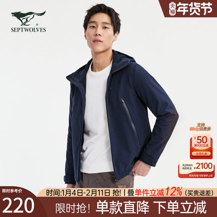 七匹狼官方正品男装夹克春季新款连帽防泼水外套时尚户外休闲茄克