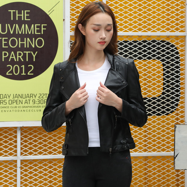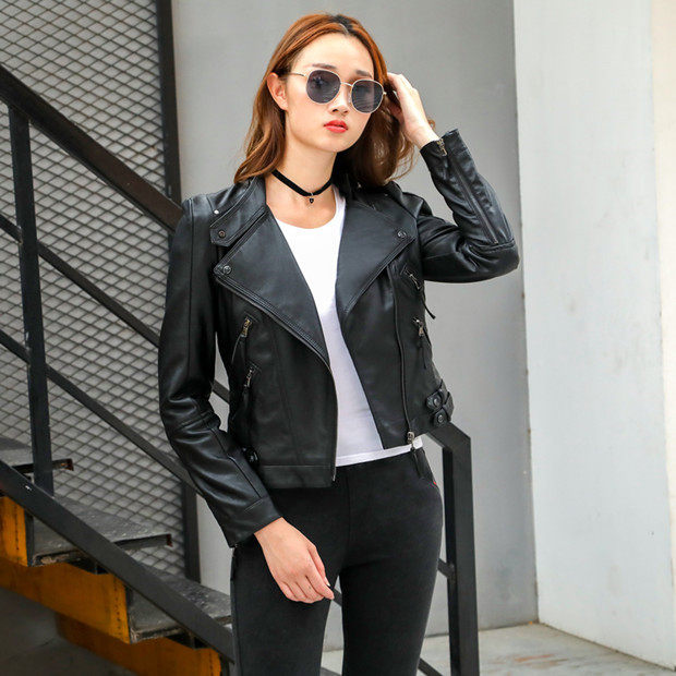 2025年春秋季新款皮衣外套女短款韩版修身加绒加厚黑色机车皮夹克