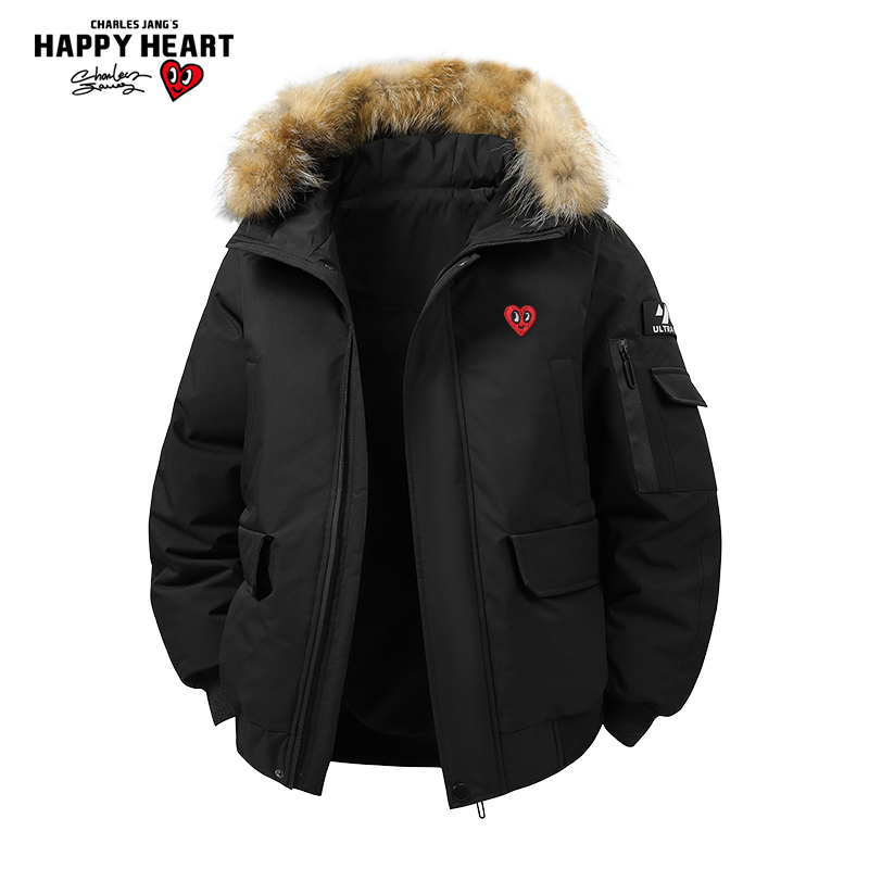 查尔斯桃心貉子毛领90鸭绒工装羽绒服男冬季加厚保暖御寒情侣外套
