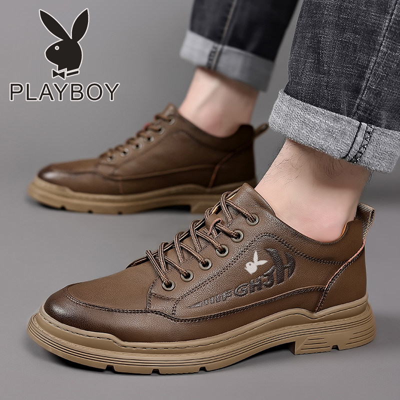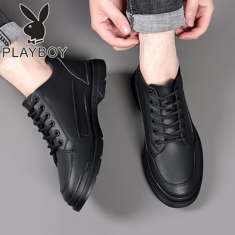 花花公子男鞋冬季真皮商务休闲皮鞋内增高加绒保暖棉鞋马丁短靴子