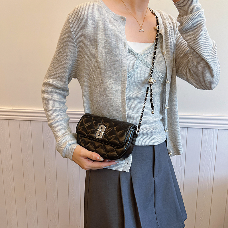 高级感超火小包包女式2025新款菱格链条马鞍包洋气百搭单肩斜挎包