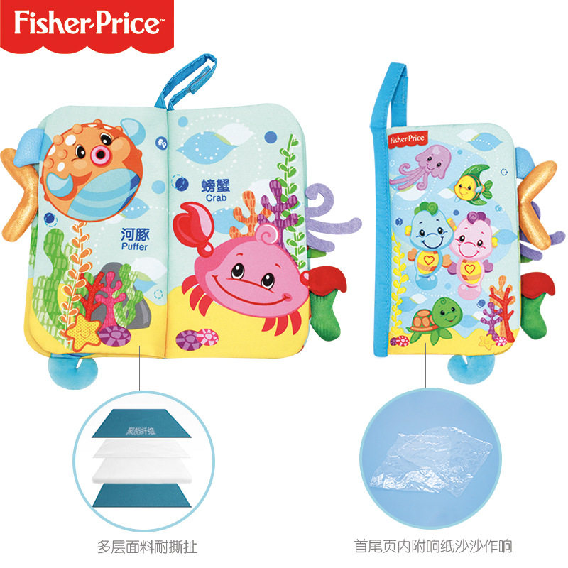 费雪F0853海马立体尾巴布书婴儿幼儿童早教书宝宝撕不烂益智玩具