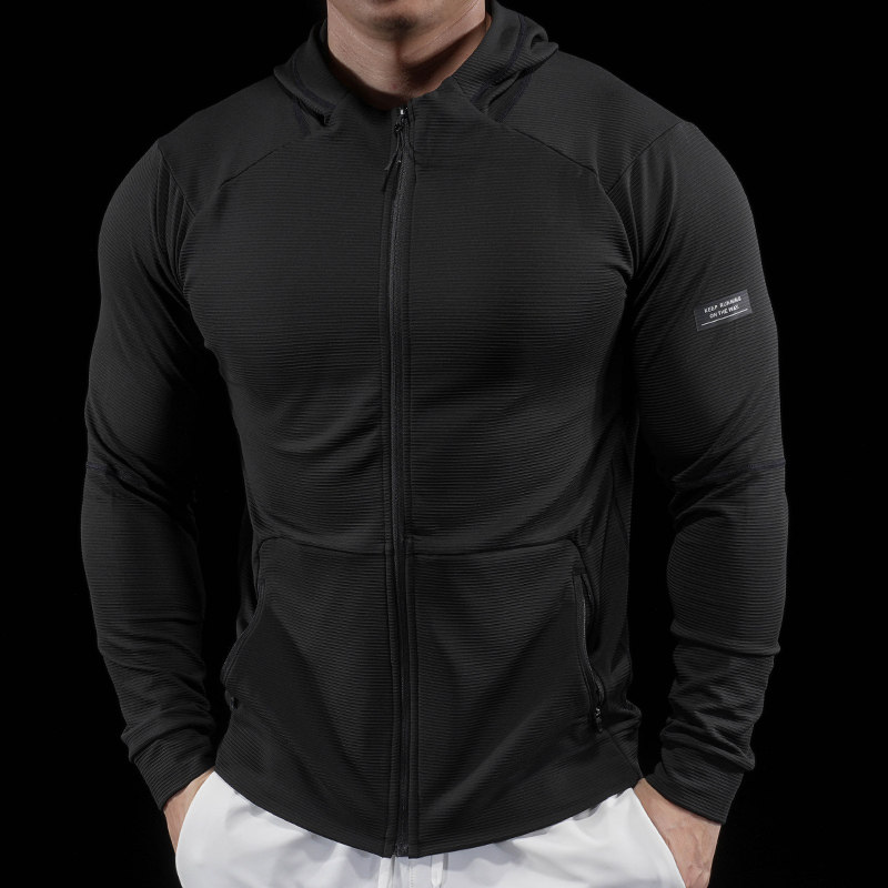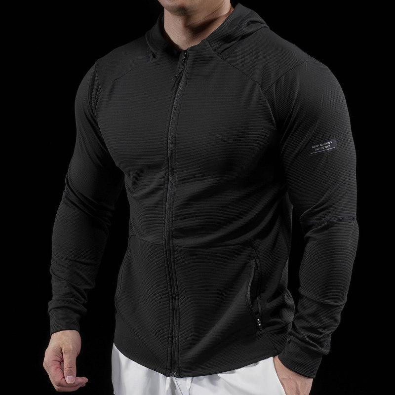 速干薄绒长袖健身外套男连帽拉链