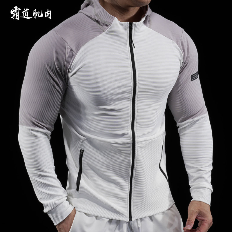 霸道肌肉 速干薄绒男士长袖健身外套连帽拉链训练服运动骑行跑步