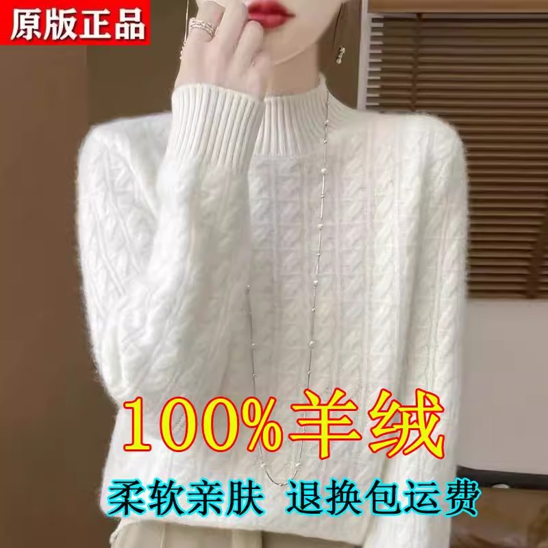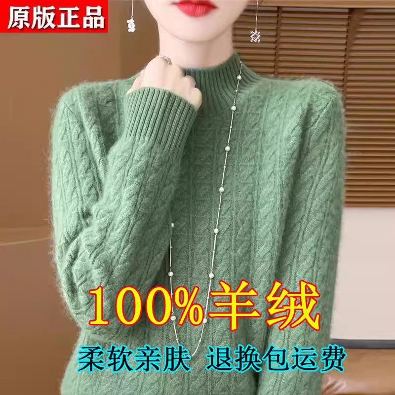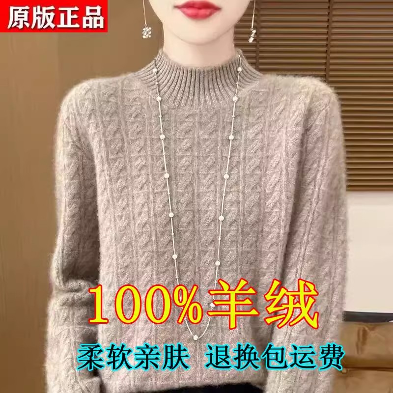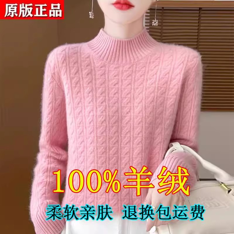 鄂尔多斯市产100%纯羊绒衫女半高领宽松秋冬款内搭针织显瘦打底衫